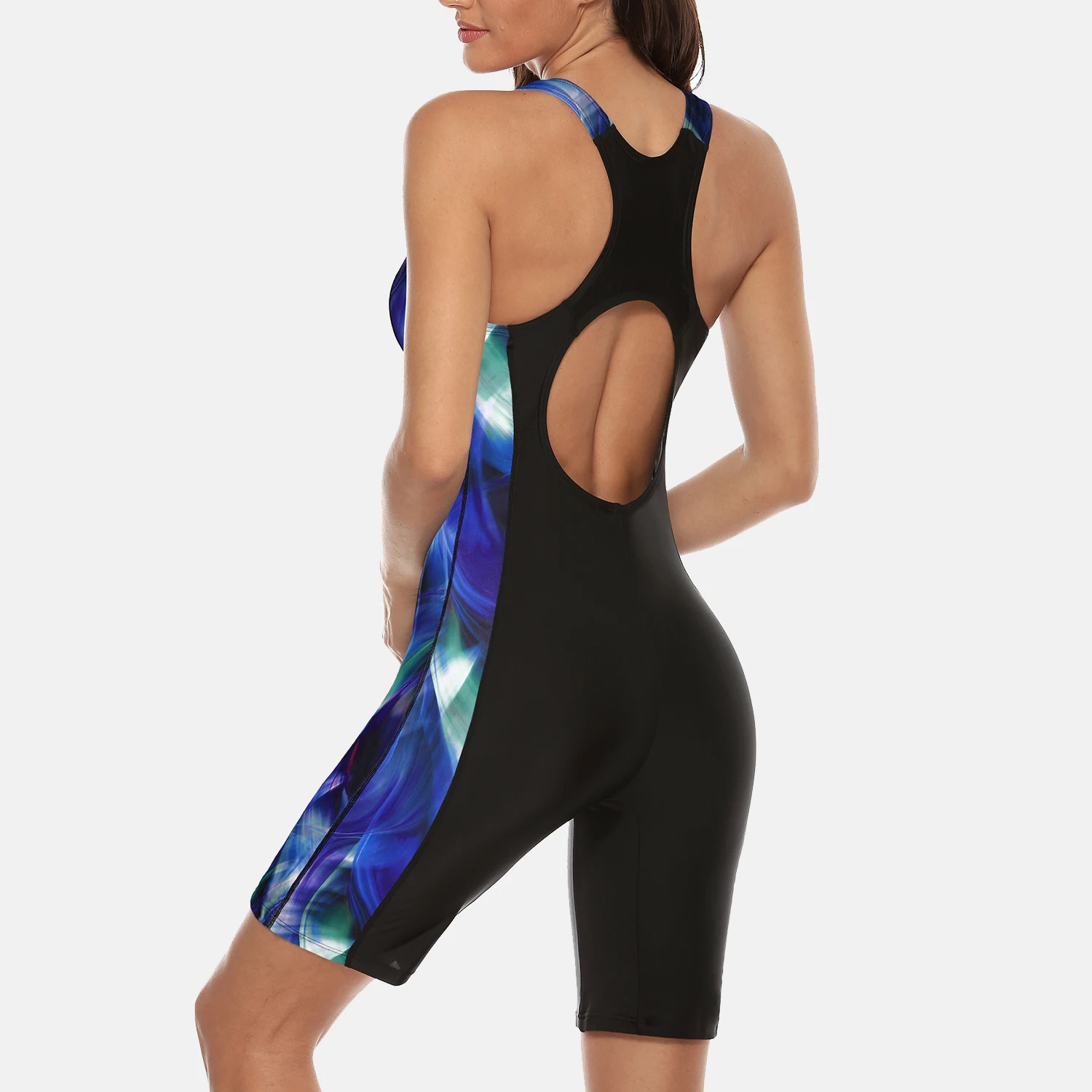Attraco Women‘s One Piece Sports Swimwear Pro Sports Swimsuit Boyleg Beach Wear Colorblock Racerback Bathing Suits Bikini