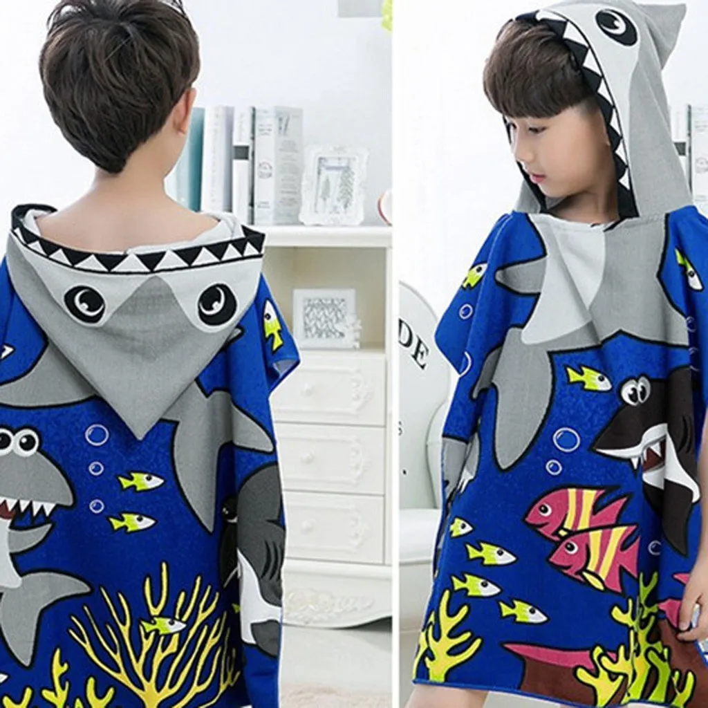 Пляжное банное полотенце с капюшоном для малышей, мягкое пончо для плавания в бассейне с акулой, накидка для мальчиков, детский банный халат От 1 до 12 лет