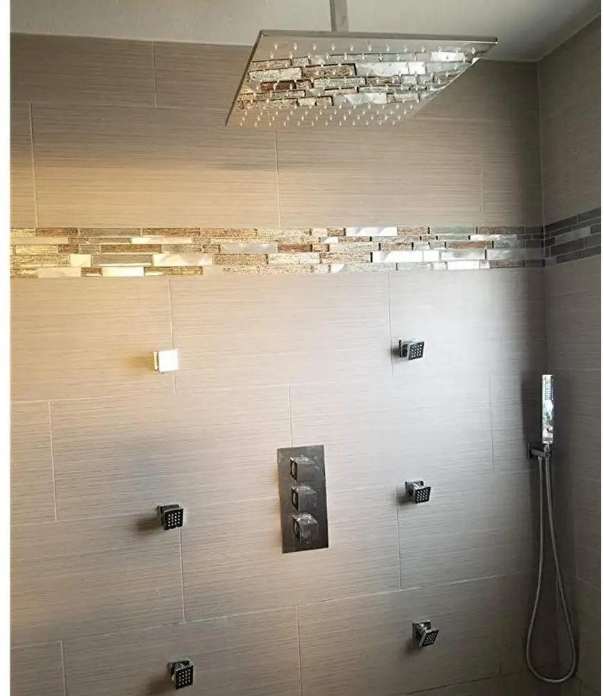 ★Полностью металлический душевой набор: HOMEDEC термостатическая латунная Душевая система с струями распыления тела, 12 "потолочный дождевой душевой кран и ручной комбинированный набор, полный комплект для душа поставляется с отделкой клапана смесителя дождя. Все готово к работе. ★Защита от ожогов: картриджи клапана для балансировки давления контролируют баланс давления воды, помогая защитить вас от резких изменений давления горячей или холодной воды. Дружественный дизайн, eapecially для детей и eldly. Блокировка температуры при температуре 38 градусов (100 ℉). ★Большой светодиодный дождевой Душ: 12 дюймов (300 мм) squre showerhead с красивым светодиодный светильник, достаточно большой для всего тела водопад душ, как вы стоите в «романтическом» дождь. Стирайте свою тишину в течение всего дня! ★Материал и внешний вид: основной корпус и клапан изготовлены из твердой латуни, легко использовать в течение многих лет. Выполнен в многослойной хромированной Лаке. Современный вид легко сочетается с вашей ванной. ★Тщательно упаковывается с каждой частью: защищена пенопластом, каждая часть в отдельной упаковке, Избегайте царапин. Поставляется с резьбой NPT, стандартом США, инструкцией mannual inckuded, очень простой в установке для handyman или водопроводчика.