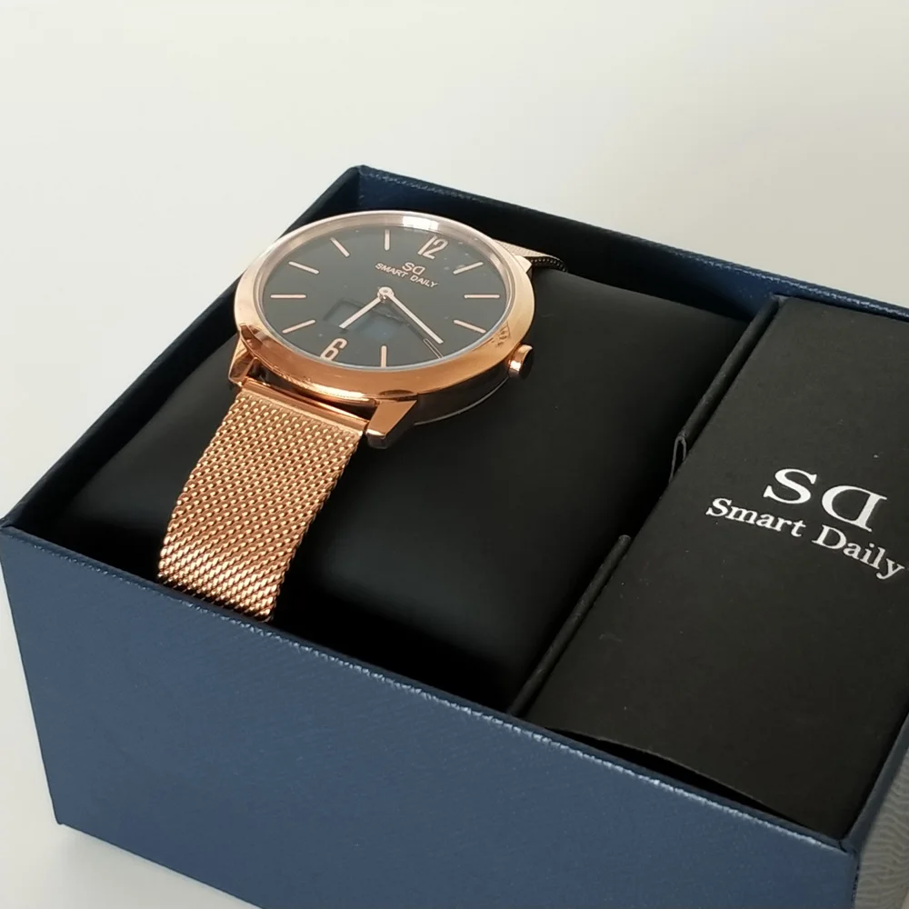 Смарт-часы с сенсорным экраном SD интегрированы в традиционные и умные технологии, с не только модным стилем, но и практическими умными функциями. Смарт-часы SD подключаются к телефону через bluetooth и приложение для достижения умных функций. Умные часы SD будут напоминать вам вибрацией при входящих звонках, сообщениях, электронной почте и нажатие приложения, а также при помощи спортивного шагомера, монитора сна. Умные часы для повседневной носки подарят вам совершенно новый опыт умных часов. Механизм: импортируется из Японии Чехол/материал ремешка: нержавеющая сталь Умный чип: скандинавский 51822 Материал крышки: минеральное стекло Экран: OLED 0,42" Материал циферблата: импортированный из Японии Bluetooth: VER 4,0 Чехол Диаметр: 39 мм Аккумулятор: полимерный аккумулятор 65 мАч Часы Толщина: 9,8 мм Время зарядки: 4 часа Размер ремешка: 18,0 × 16,0 мм Время работы: 4-6 дней Длина ремешка: 220,0 мм Совместимость: IOS 7,0/Android 4,4 Водонепроницаемость: 3 бар Функция: 1. Напоминание о звонке: когда вы получите телефонный звонок, часы Вибрирует и Отображает номер вызова и имя. 2. Напоминание о соцпрограммном обеспечении: WeChat SMS QQ Facebook WhatsApp Line T witter, получил Выше информация о программном обеспечении, часы появятся С иконами и вибрационными оповещениями. 3. Функция упражнений: рассчитать общее количество Шаги в день, общая длина расстояния, Общее количество сожженных калорий. Часы и приложение Обновляйте данные дня каждый день. 4. Мониторинг сна: мониторинг сна показывает только в Фон приложения, данные о спящем режиме Той ночью он был передан в приложение через часы. 5. Будильник: умное ежедневное приложение устанавливает время будильника На странице напоминания. Когда будильник Прибывает, часы вибрируют и отображают сигнал тревоги Значок часов. 6. Экран освещения с поднятием руки: после функции Включен, поднимите руку, чтобы сделать часы в Горизонтальная плоскость, часы имеют яркий экран и Отображение времени.