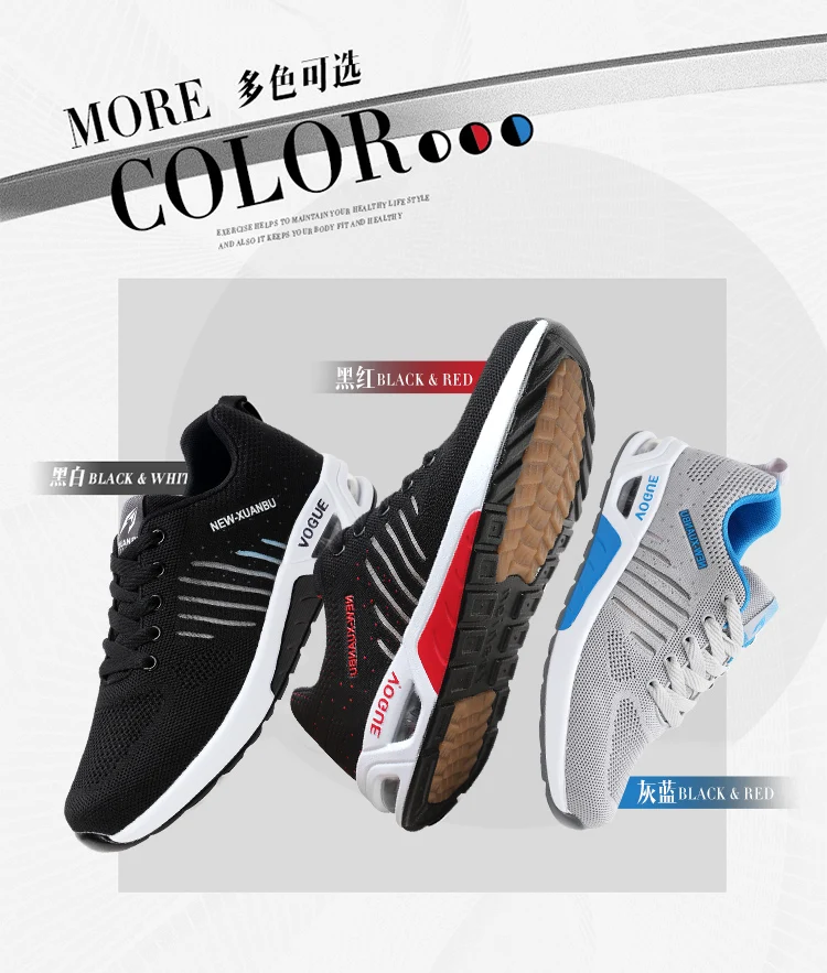 2020 Trending Products Outdoor Mens Running Shoes Breathable Flyknit Sneakers Men Air Cushion Gym Sport Shoes Men Basket Homme Upper: Leather Sole:Rubber Size:39-44