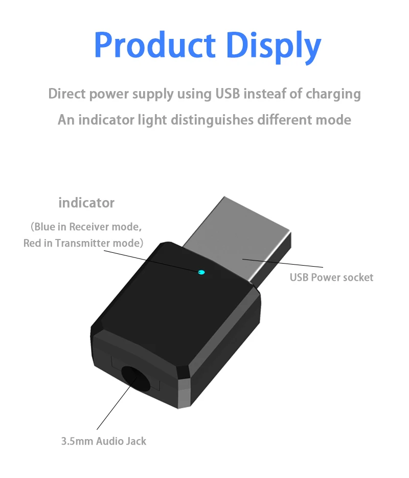 Посылка:1x Bluetooth 5,0 аудио передатчик/приемник адаптер