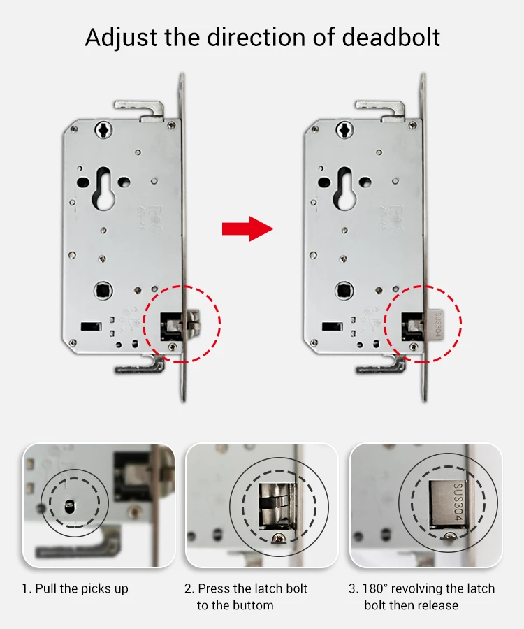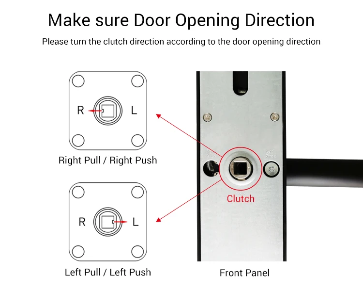 1. Проверьте толщину двери: 35 ~ 110 мм (если более 110 мм, пожалуйста, свяжитесь с нами) 2. Измерьте старый дверной замок, как показано на рисунке ниже, затем выберите наиболее подходящий размер врезной формы. 3. Определите направление замка двери