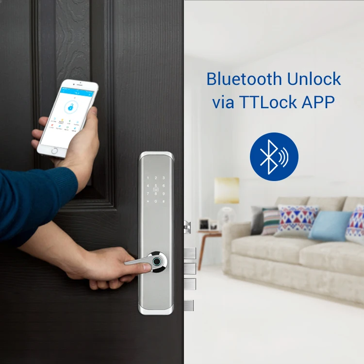 Батарея: двойная батарея резервного копирования/8 AA батареи Материал: Kirsite Цвет: серебристый, черный, серебристый Способ открытия: Bluetooth, пароль приложения, отпечаток пальца, пароль, карта, ключ Класс цилиндра: c-образный цилиндр Применение: семья, квартира, школа, офис Функциональный: деревянная дверь/дверь безопасности/противопожарная дверь/нержавеющая дверь Корпус замка: устойчивость к пилению \ устойчивость к вытягиванию \ защита от взлома \ защита от кражи Источник питания: 4 батарейки типа АА (не входят в комплект) Толщина двери: 1,57-4,33 дюйма или 40-110 мм Группа хранения отпечатков пальцев: 200