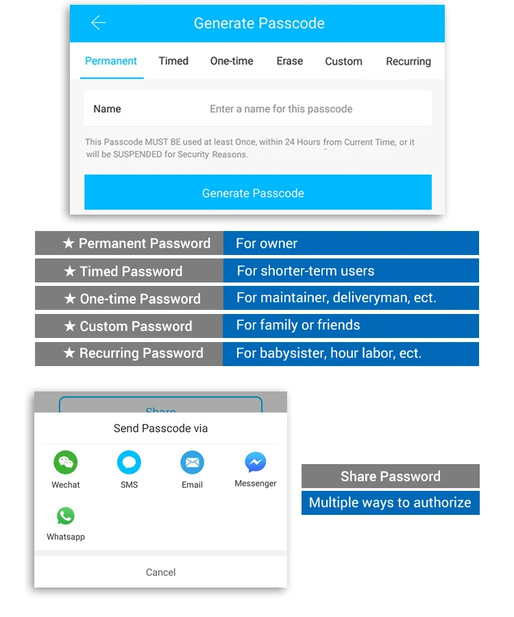 Отпечаток пальца/Пароль/карта/ключ/разблокировка приложения