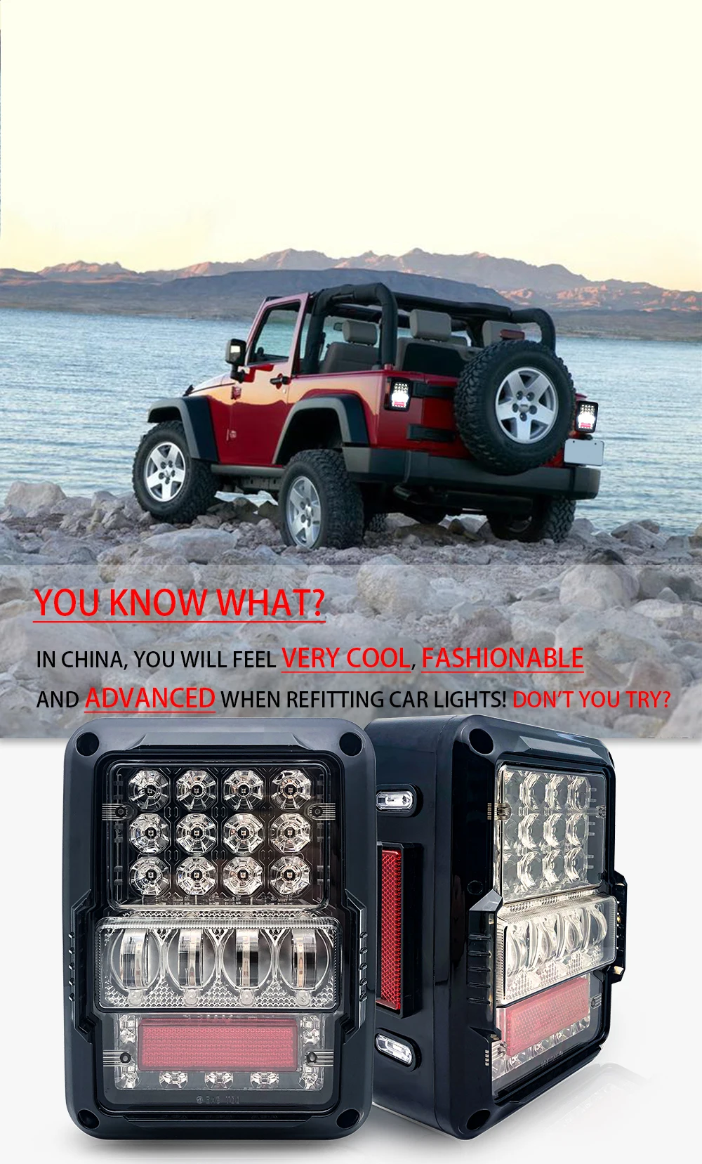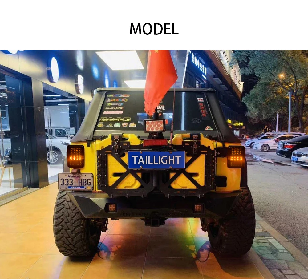 Jeep wrangler jk tail light Specifications: •Voltage: DC10-30V •For Wrangler LED taillights, the U.S. is red version, European is yellow version •can be used for 2007+Wrangler vehicles . •just plug and play, no need to change the original car circuit wires. •LED taillights,nice apperence •Led lifetime: 50,000 hours. •Housing color: Black •Lens material: PC •N.W. 3KGS/Piece •Warranty:1 year