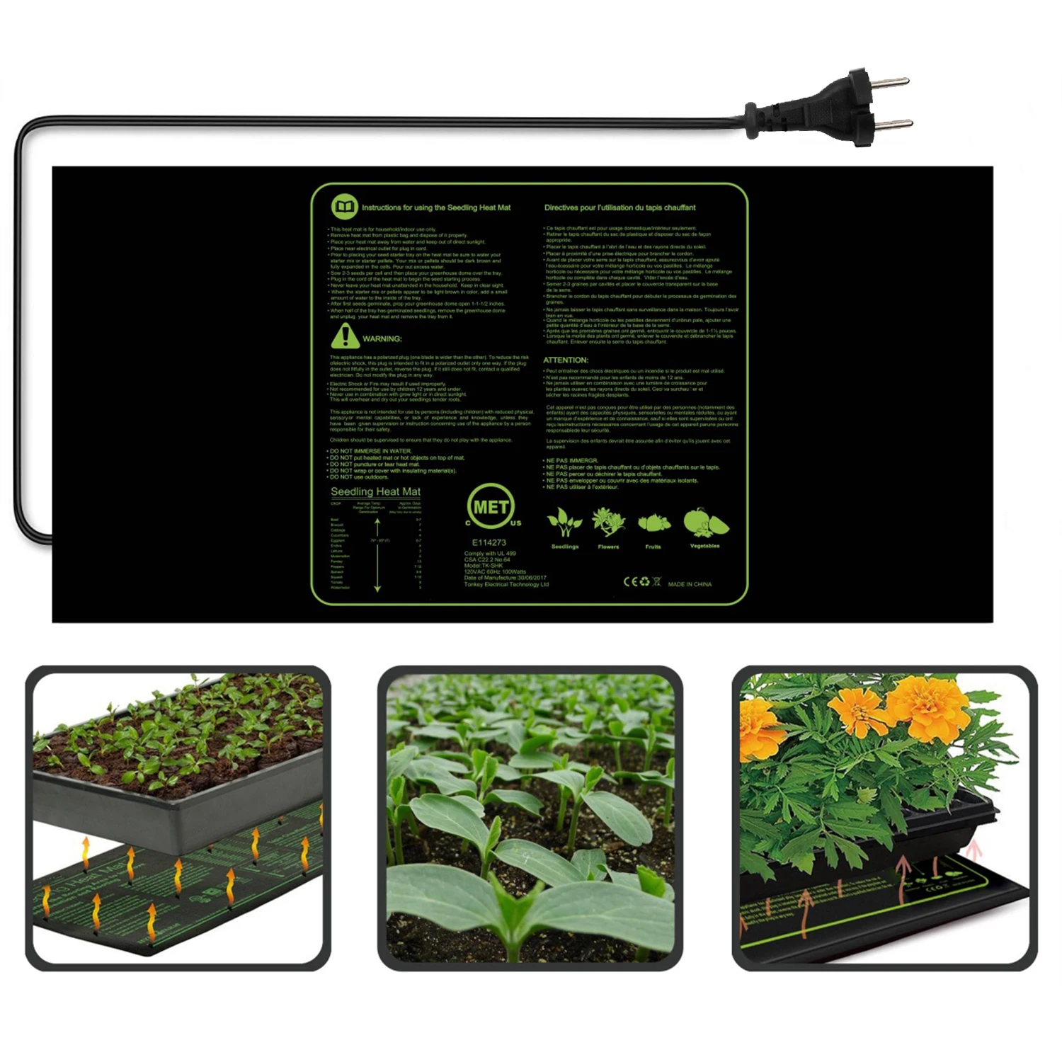 Нагревательный коврик для рассады имеет прочную конструкцию, водонепроницаемую и удобную очистку. Нагревательный коврик для рассады для лучшего роста растений и прорастания семян цветов. Одиночная цепь обеспечивает постоянную температуру и увеличивает успех саженцев и черенков. Идеально подходит для сеялки, прорастания, домашнего пивоварения и домашнего животного ограждения террариумов.