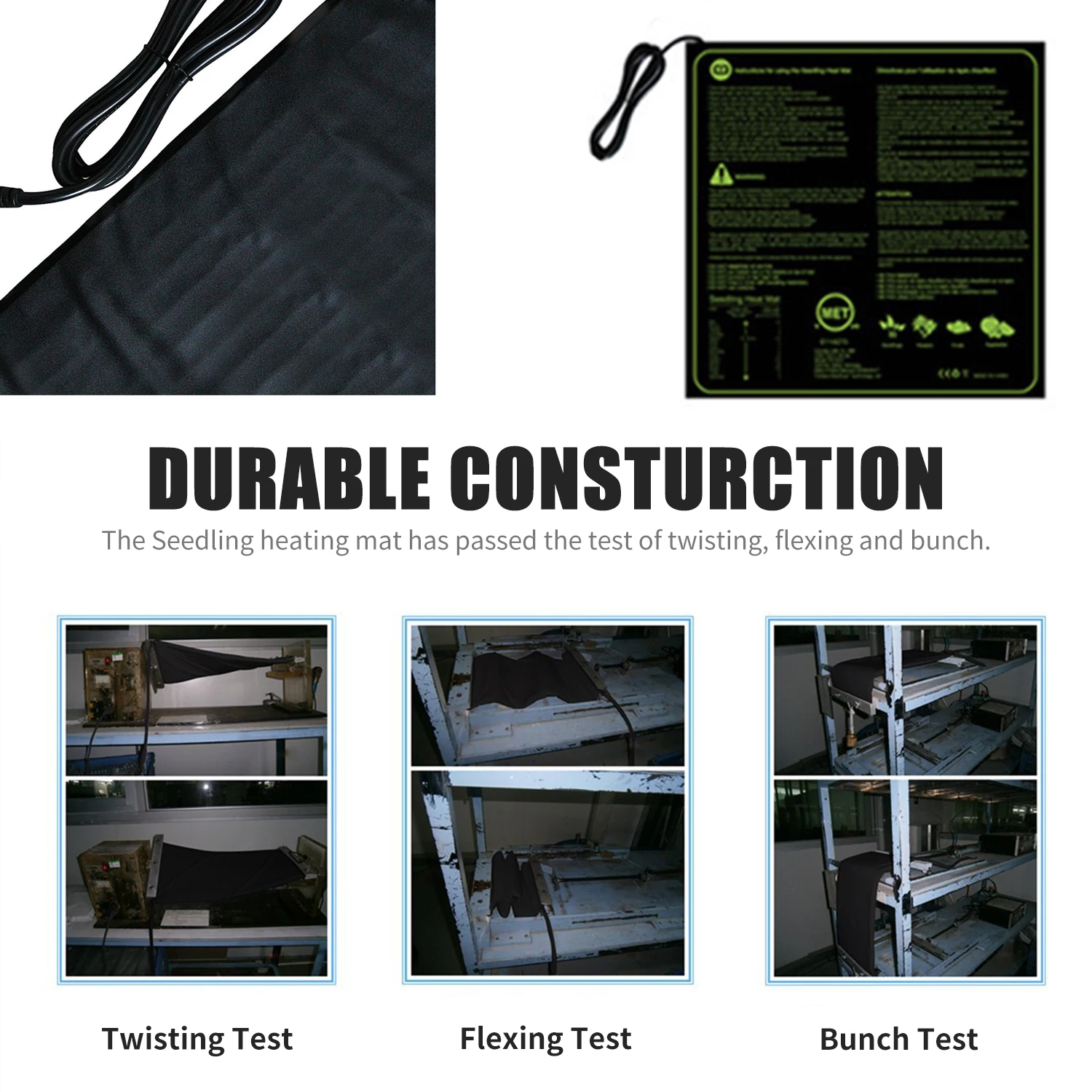 [Прочная конструкция]Нагревательный коврик для рассады прошел проверку скручивания, сгибания и связки, а также с более прочной нагревательной проволокой и толстой многослойной конструкцией.