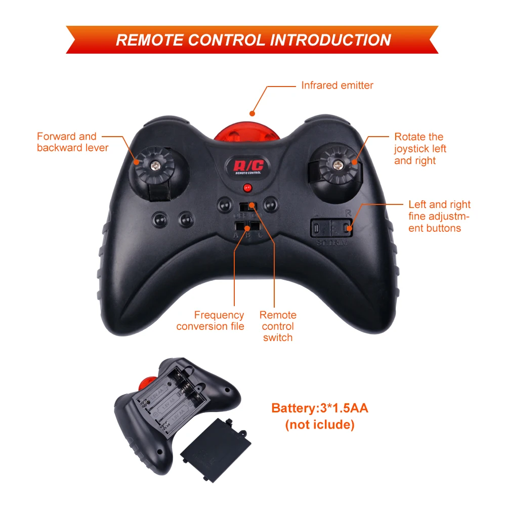 * Материал: АБС-пластик * Цвет: красный, синий, черный * Продукт Размеры: 8,5*14*3,5 см * Возраст: 8 + * Зарядка: через USB * Время зарядки: 20-40 мин * Удаленное Расстояние: 10 метров * Дистанционный аккумулятор: 3*1,5 АА (не входит в комплект)