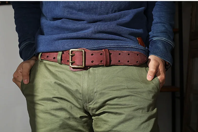 Гипоаллергенный Для Мужчин's 3,8 см двойной иглой пояс чистая Медь Пряжка Роскошный пояс толстый кожаный ремень Для мужчин's ремень известного бренда, Для мужчин джинсы ремень