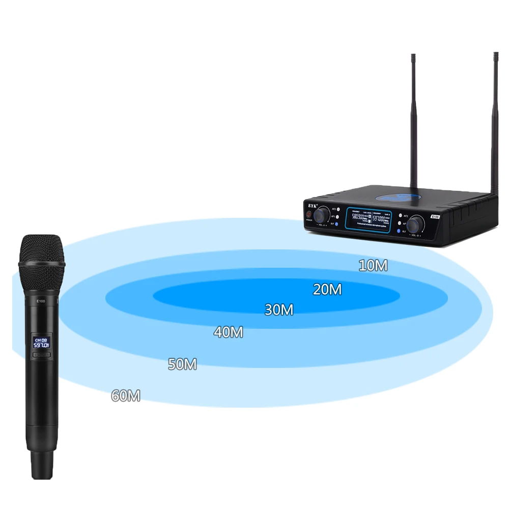 UHF Беспроводная микрофонная система с двойным портативным микрофоном 500-900 МГц 60 м расстояние