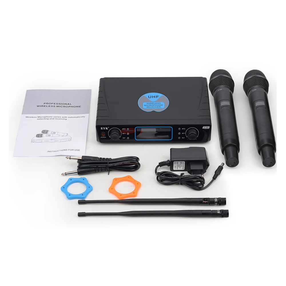 1. Фиксированная частота диапазона УВЧ Частоты 500A: 558,50 МГц, 574,60 МГц, Частоты 500B: 577,70 МГц, 593,80 МГц Частоты 500C: 579,30 МГц, 595,40 МГц Частоты 500D: 580,90 МГц, 597,00 МГц Частоты 500E: 582,50 МГц, 598,60 МГц Частоты 600A: 607,70 МГц, 649,60 МГц, Частоты 600B: 621,50 МГц, 628,00 МГц Частоты 600C: 641,50 МГц, 645,70 МГц Частоты 600D: 662,20 МГц, 672,30 МГц Частоты 600E: 607,70 МГц, 649,60 МГц Частота 700A: 710,10 МГц, 726,20 МГц, Частота 700B: 713,30 МГц, 729,40 МГц Частота 700C: 711,70 МГц, 727,80 МГц Частота 700D: 714,90 МГц, 731,00 МГц Частота 700E: 716,50 МГц, 732,60 МГц Частоты 800A: 807,70 МГц, 849,60 МГц, Частоты 800B: 821,50 МГц, 829,00 МГц Частоты 800C: 836,80 МГц, 843,70 МГц Частоты 800D: 842,20 МГц, 843,70 МГц Частоты 800E: 857,50 МГц, 864,20 МГц Пожалуйста, сообщите мне, какую частоту вы хотите, или мы отправим его случайным образом. 2. Передатчик: 2 шт. полуметаллических ручных микрофона. 3. Передняя часть приемника: пластиковая коробка, выключатель питания, экран с подсветкой, индивидуальная Ручка громкости, индикатор AF/RF. 4. Задняя часть приемника: интерфейс питания, два отдельных выхода XLR и один смешанный выход 1/4 ", два интерфейса антенны 5. Диапазон: до 200 футов (до 60 метров), подходит для караоке, речи, вечерние, церковные и т. Д. 6. Батарея передатчика: 4*1,5 V AA (не прилагаются)