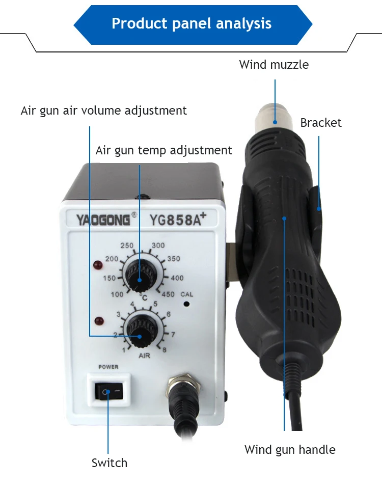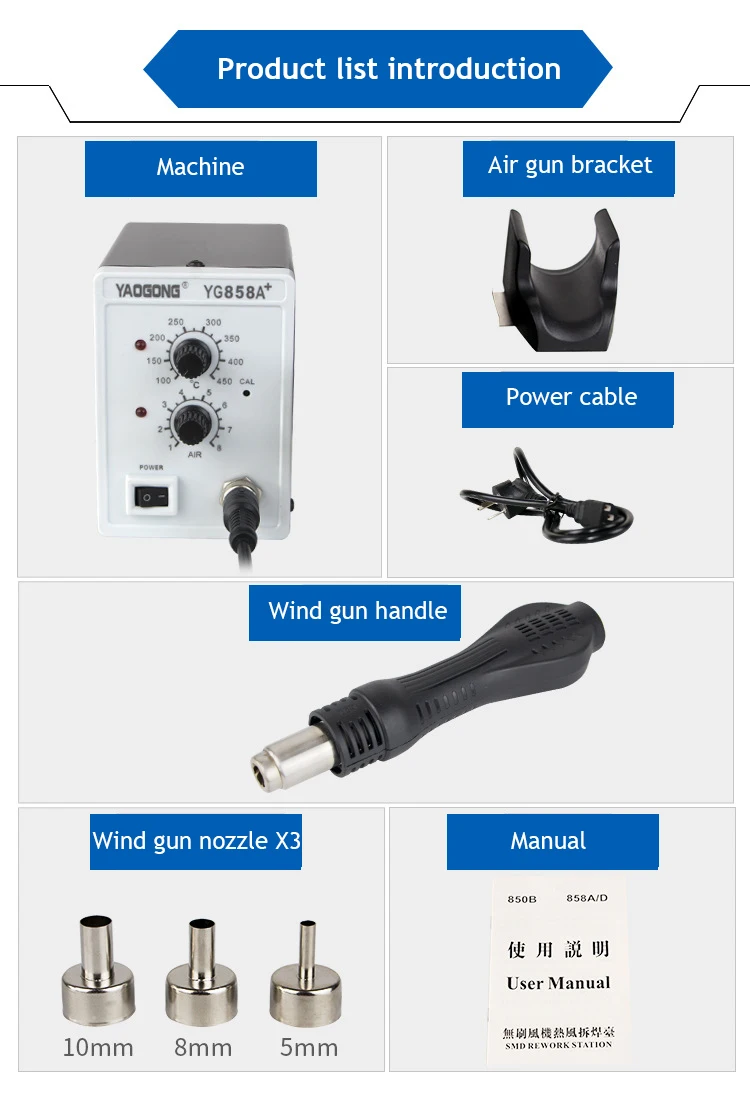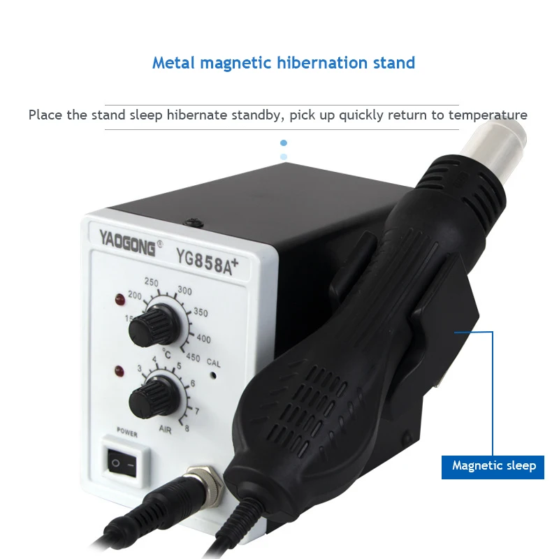 YAOGONG 858A + пистолет с горячим воздухом, регулируемая станция с постоянной температурой, мобильный телефон, ремонт, сушка