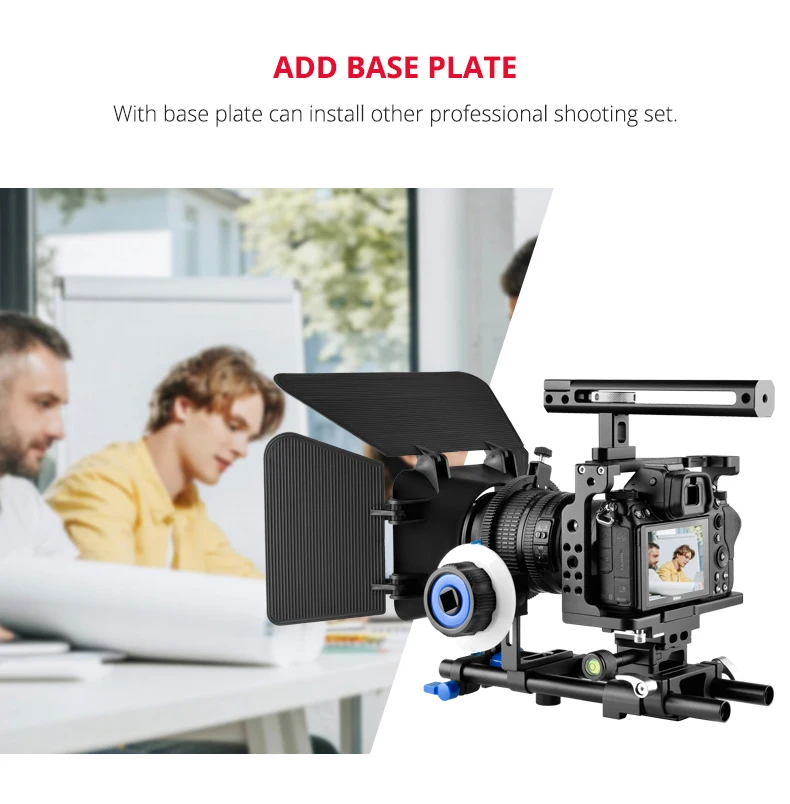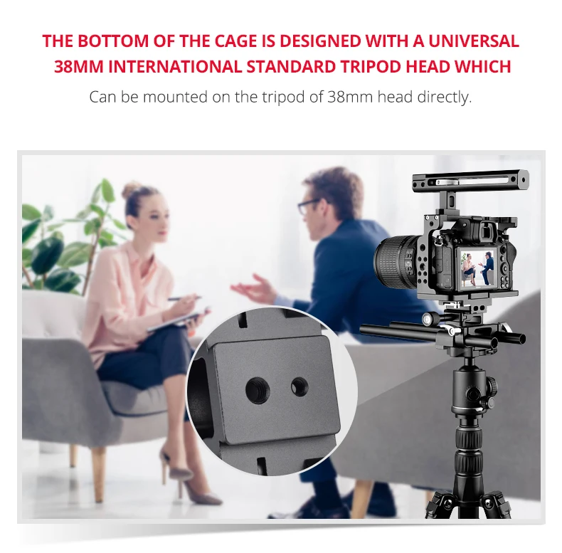 【A CAGE KIT】The cage kit is an assembly of the Cage, top handle and base support 【HIGH CUSTOMIZATION】The cage is designed for Nikon Z6 Z7, it would not block any buttons on the camera and you are able to access not only the battery but even the SD card slot 【TOP HANDLE】Attached to the cage via two 1/4" screws, the top handle features multiple mounting points and a cold shoe base for accessory attachment 【PERFECT USE】secured tightly via the 1/4" screw on the bottom and 38mm standard ARCA-SWISS quick release plate, one button release and installation, easy to use