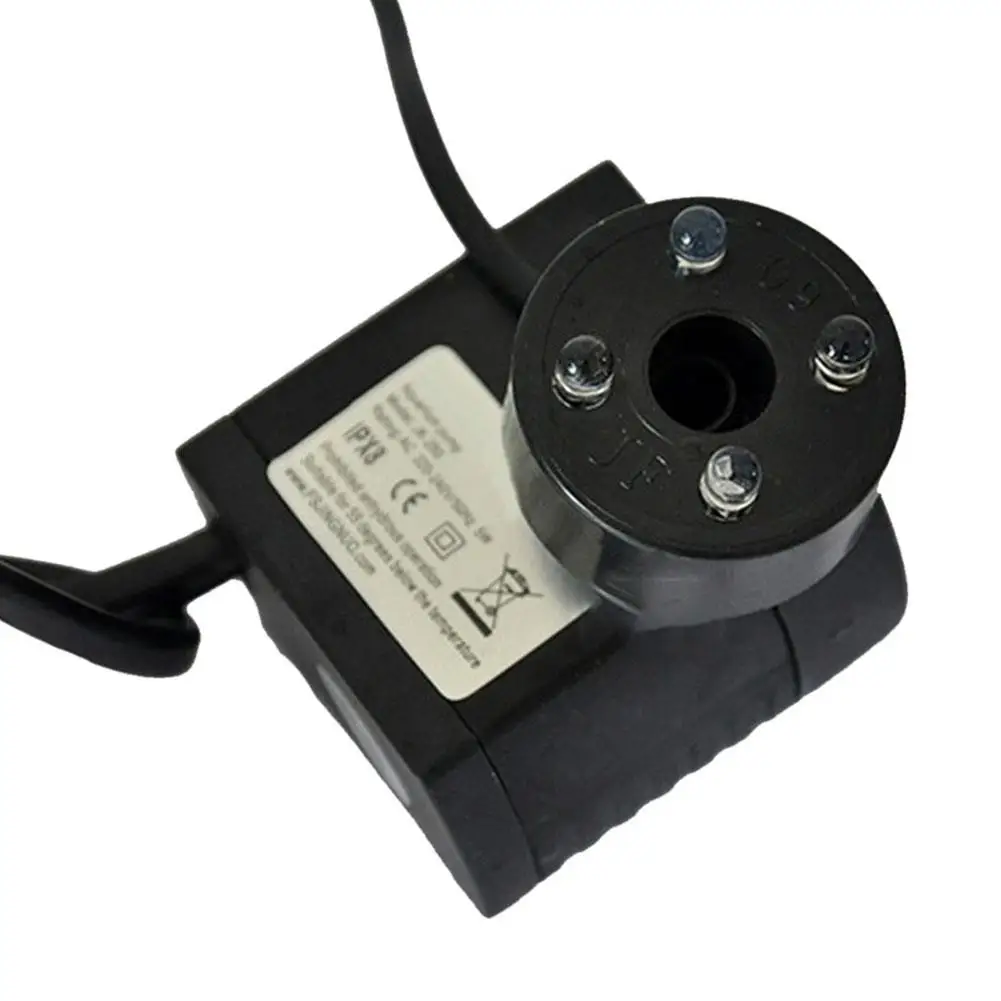 Погружной водяной насос с 4 светодиодный ными лампами для фонтанов, бассейнов, садовых прудов, рыб.Подходит для аквариума, фонтанов, носиков и гидропонных систем. Небольшой размер, легко скрывается или маскируется. Регулируемый расход воды, удобен в использовании.