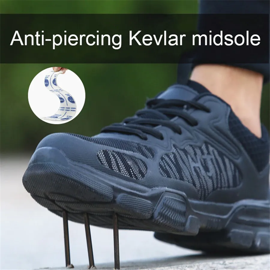 Мужская защитная обувь с защитой от проколов, мужские Нескользящие кроссовки со стальным носком, дышащая обувь, рабочие ботинки, Спортивная защитная обувь