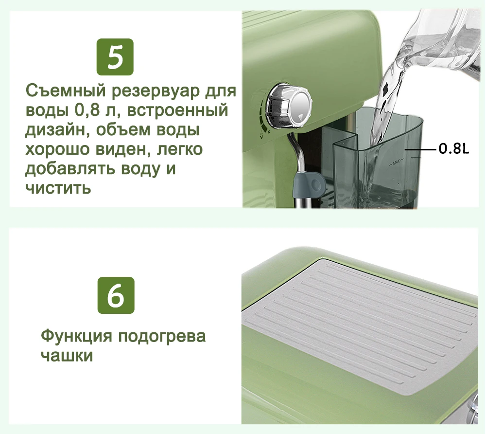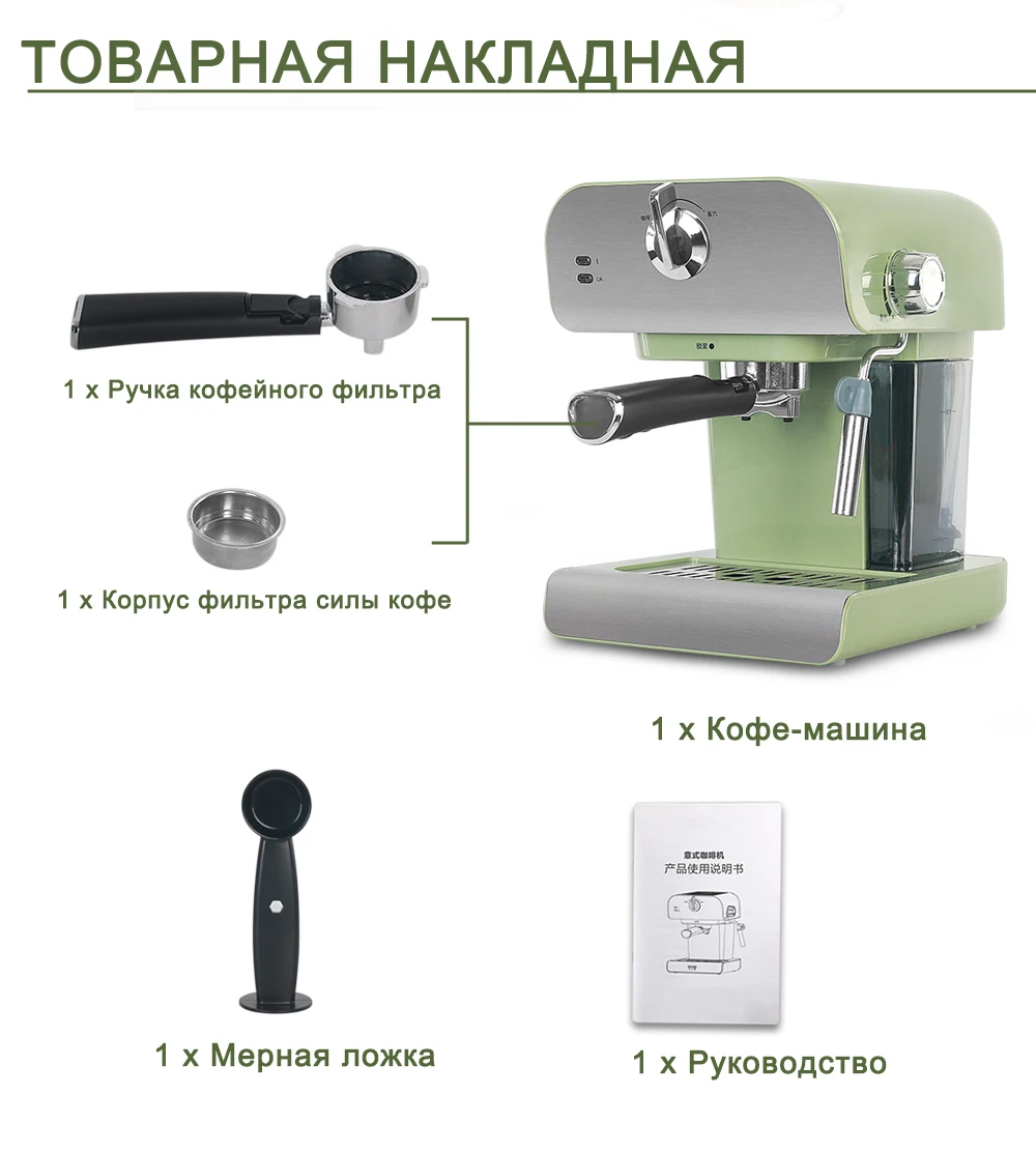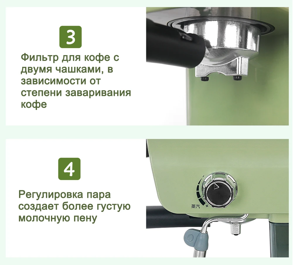 Описание: Название: Полуавтоматическая машина кофе Эспрессо машина Модель: IT-6867 Материал: Нержавеющая сталь + Пластик Вода Ёмкость бака: 0.8L Напряжение: 220V/50Hz Мощность: 850W Фильтр Размеры: 58*220 мм Машина Размеры: 220*290*290 мм Упаковка Размеры: 365*310*390 мм N.W. : 3,2 кг G.W. : 4,4 кг Особенности: 1. Легко opearation 2. Регулируемая подача, молочной пены плотный 3. Короткое время прогрева 4. Нержавеющая сталь и пластиковый корпус 5. Небольшая машина для домашнего использования Deatil: 1. Четко узнать, есть ли машина приведенный в действие и закончить прогрева. Подогрева занимает всего две минуты 2. Простота в эксплуатации, две основные функции: кофе ручка и паровой ручка 3. Двойной чашки кофе фильтр, в соответствии с вашими пивоварения кол-ва кофе мощности 4. Регулировка пара создает более плотной молочной пены 5. 0.8L Съемный резервуар для воды, встроенный дизайн, объем воды хорошо видно, легко добавлять воду и очистки 6. Теплая чашка функция 7. 20Bar высокое давление быстрого извлечения эспрессо. 8. Съемный поддон для воды, легкоочищающийся