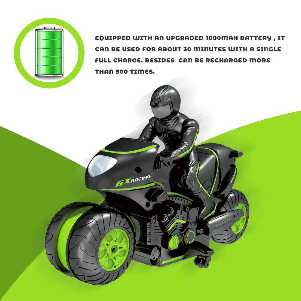Материал: пластик Размеры: 9,8x4,13x4,3 дюйм (ов) Вес: 1,34 фунтов Применимые группы: дети старше 5 лет Время работы: 30 минут Время зарядки: 120 минут (потому что это обновленная версия аккумулятора, имея больший объем требует больше времени зарядки, и медленная зарядка мы так же можем изготовить аккумулятор, который имеет более длительный срок службы.) Цикл зарядки раз: 500 раз Скорость: 12 км/ч Удаленная технология: 2,4 ГГц передатчик Controldistance: Натяжной канат длиной 25 м АКБ для мотоциклов: 3.7V1000mAh дальний управление Используйте батарейки АА (R6) аккумулятор. Функции: вперед, назад, движение задним ходом, левый поворот, правый поворот, дрейф, 360 ° вращение