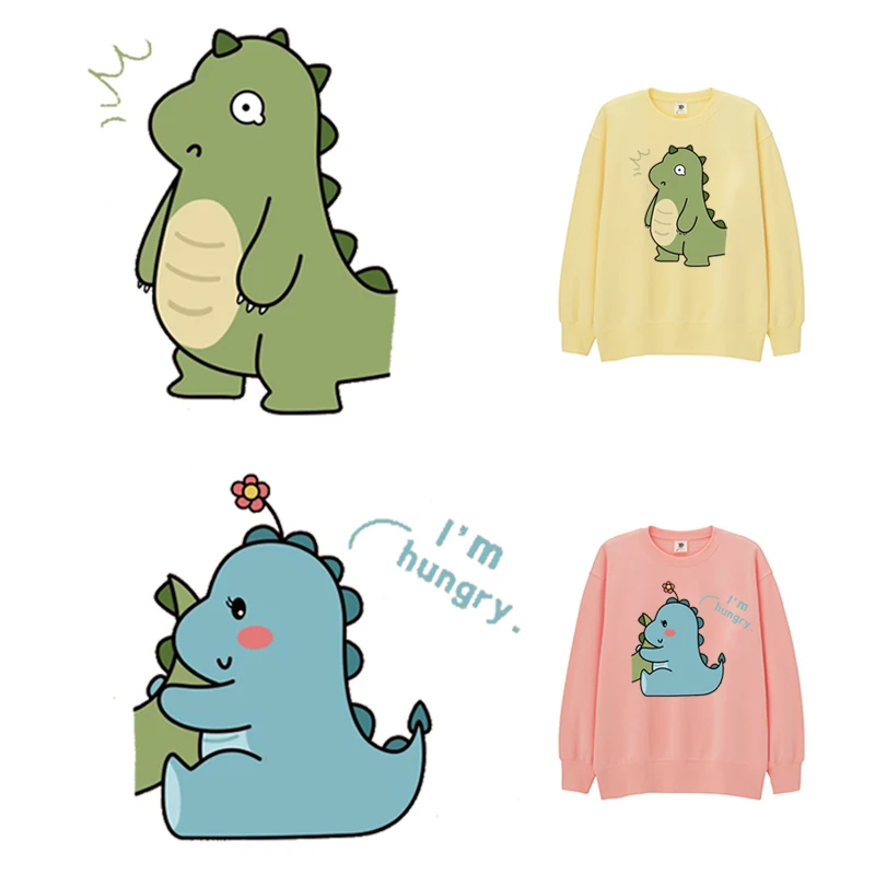 Пара виниловых наклеек с изображением динозавра из мультфильма, Милый Железный стикер для переноса одежды, аппликация, моющийся значок, Декор, сделай сам