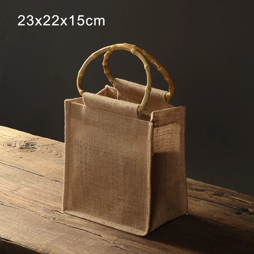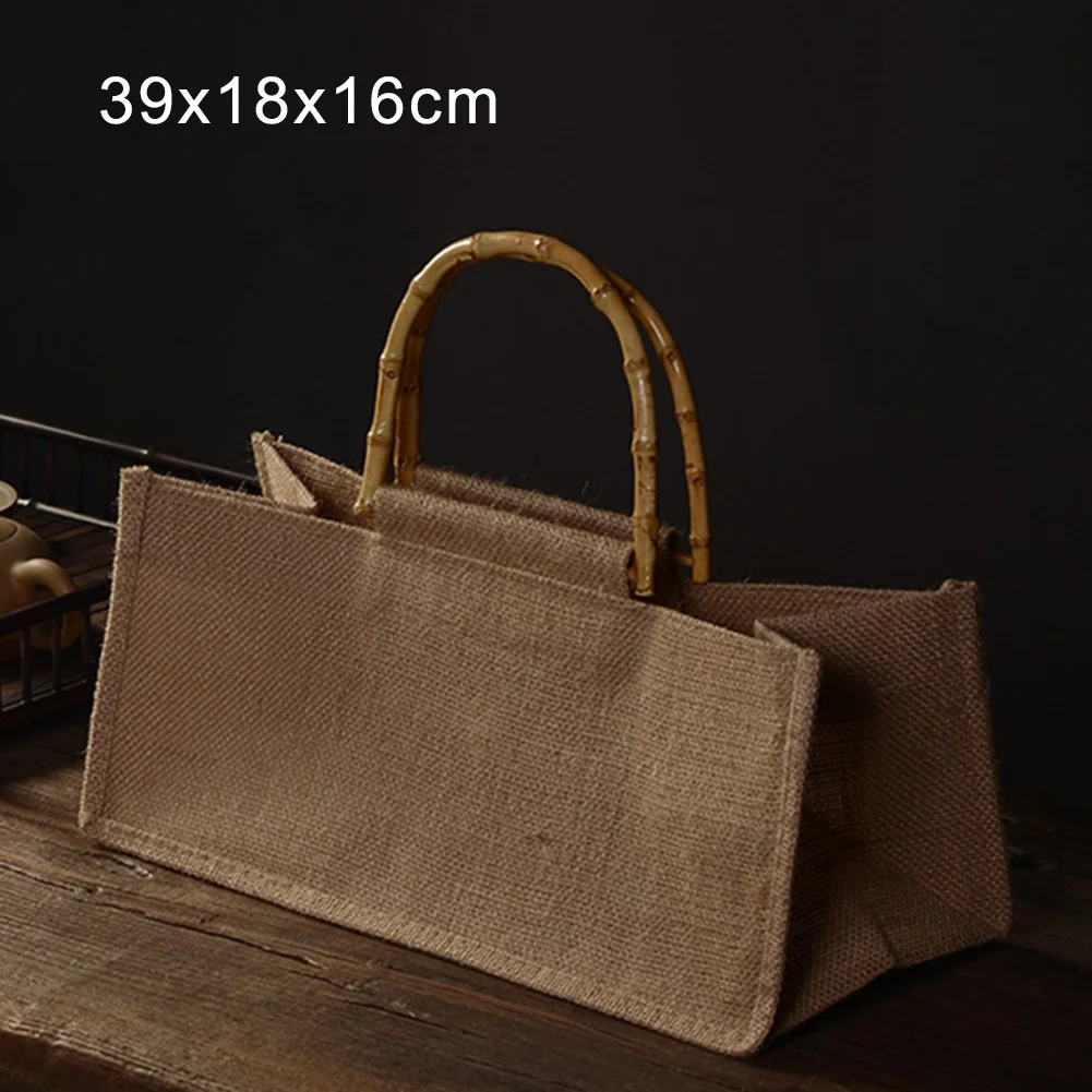 Льняные сумки с бамбуковой ручкой модные окружающую среду Подарочный пакет бытовой Праздник День Рождения Вечеринка подарочная упаковка мешки