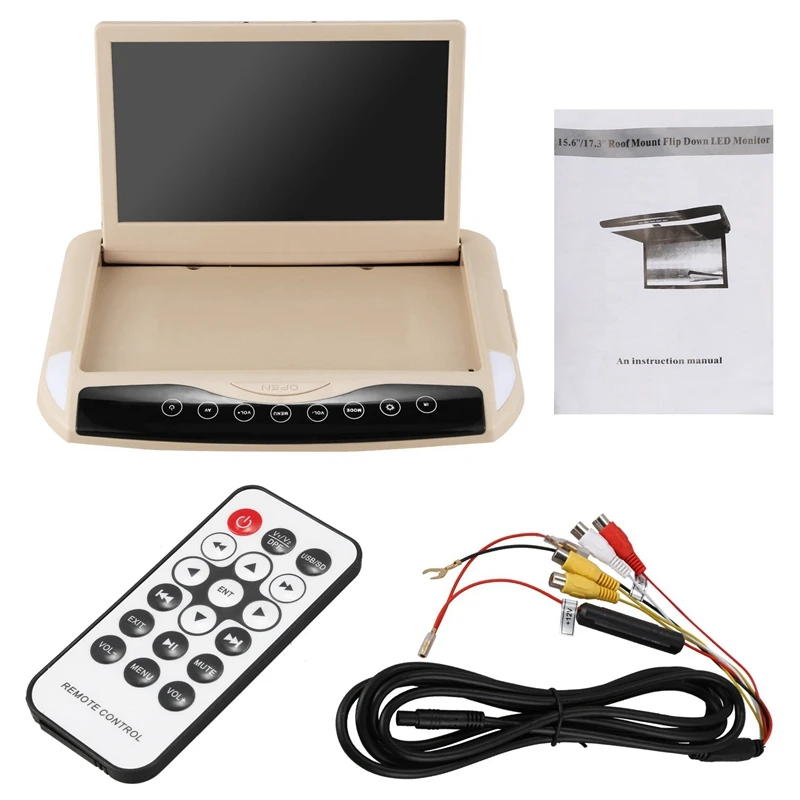 Серый Автомобильный откидной монитор, с USB и SD. Цифровая панель с высоким разрешением: 800x480. Верхняя консоль с двумя супер яркими светодиодный купольными лампами.
