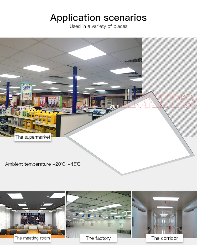 Три способа установки: потолок из минеральной ваты, интегрированный потолок, потолок из гипсокартона. Можно настроить различные размеры, свяжитесь со службой поддержки клиентов Преимущество 1. Гарантия 3 года 2. Привод и источник света лампы-бренд philips 3. световая направляющая однородна без темной области, 600*600-четырехсторонняя светящаяся конструкция 4.CRI: Ra> 80, поток: 90 лм/Вт Применение: гостиная, кухня, ванная комната, офис, конференц-зал и другие внутренние потолки. Установка: Встроенный потолок (встроенный)