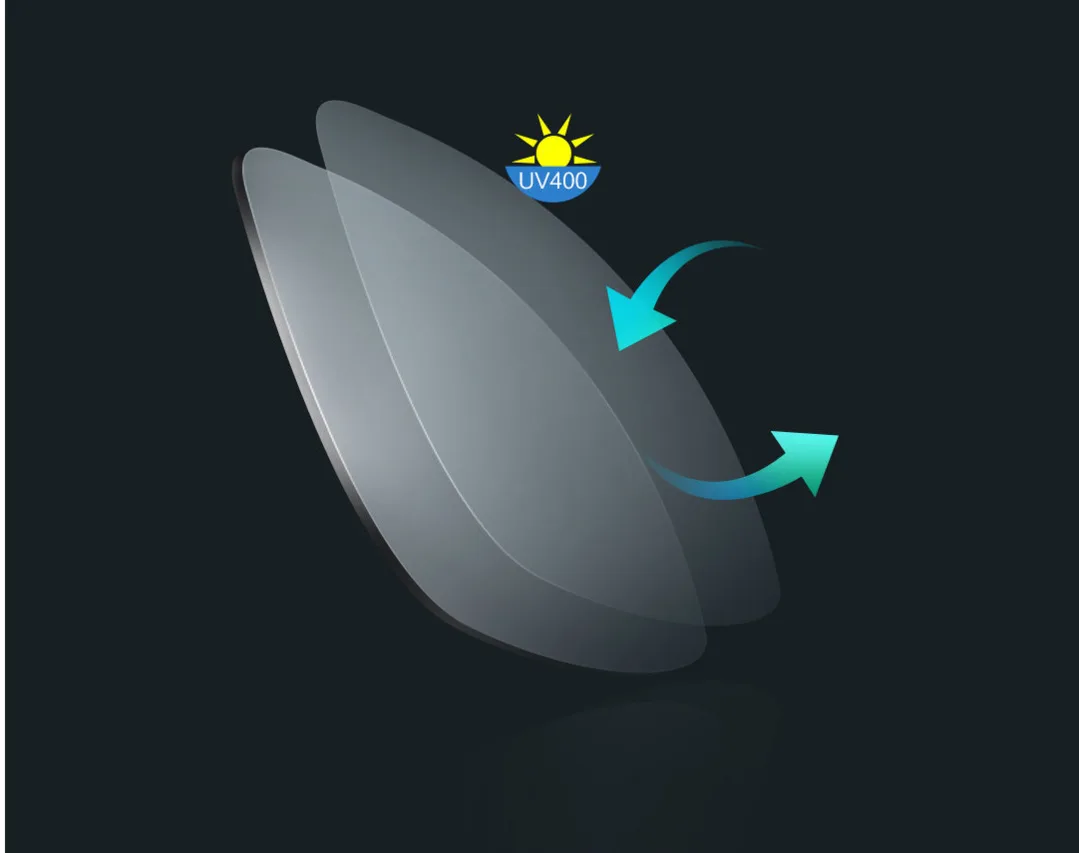 Линза покрыта поляризационным слоем пленки для фильтрации беспорядка и рассеянного света и защиты глаз от бликов.