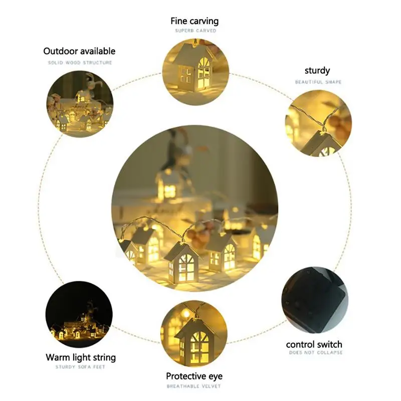 Мини-домашний струнный светильник имеет белый деревянный шланг светильник абажур, нежный и естественный, надежный для длительного использования.