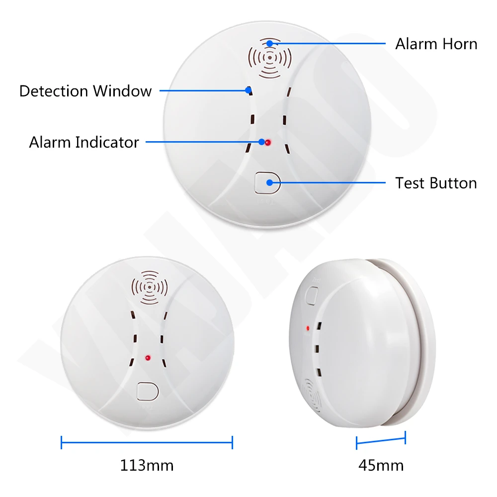Работает как самостоятельно, так и с системой сигнализации! * Он не только имеет функцию независимого детектора дыма, но также посылает сигнал на Хост сигнализации, когда срабатывает сигнал тревоги. После приема сигнала хостом, он немедленно наберет сигнал тревоги или SMS, или приложение push-уведомление.