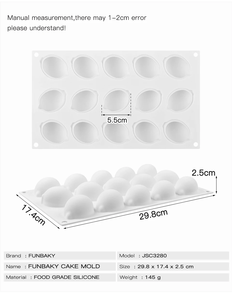 FUNBAKY 15 Cavity lemon Silicone Mold For cake Baking Decorating Tools fruits Jelly Pudding Moulds Forms