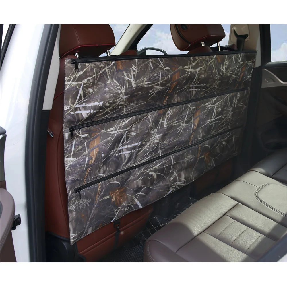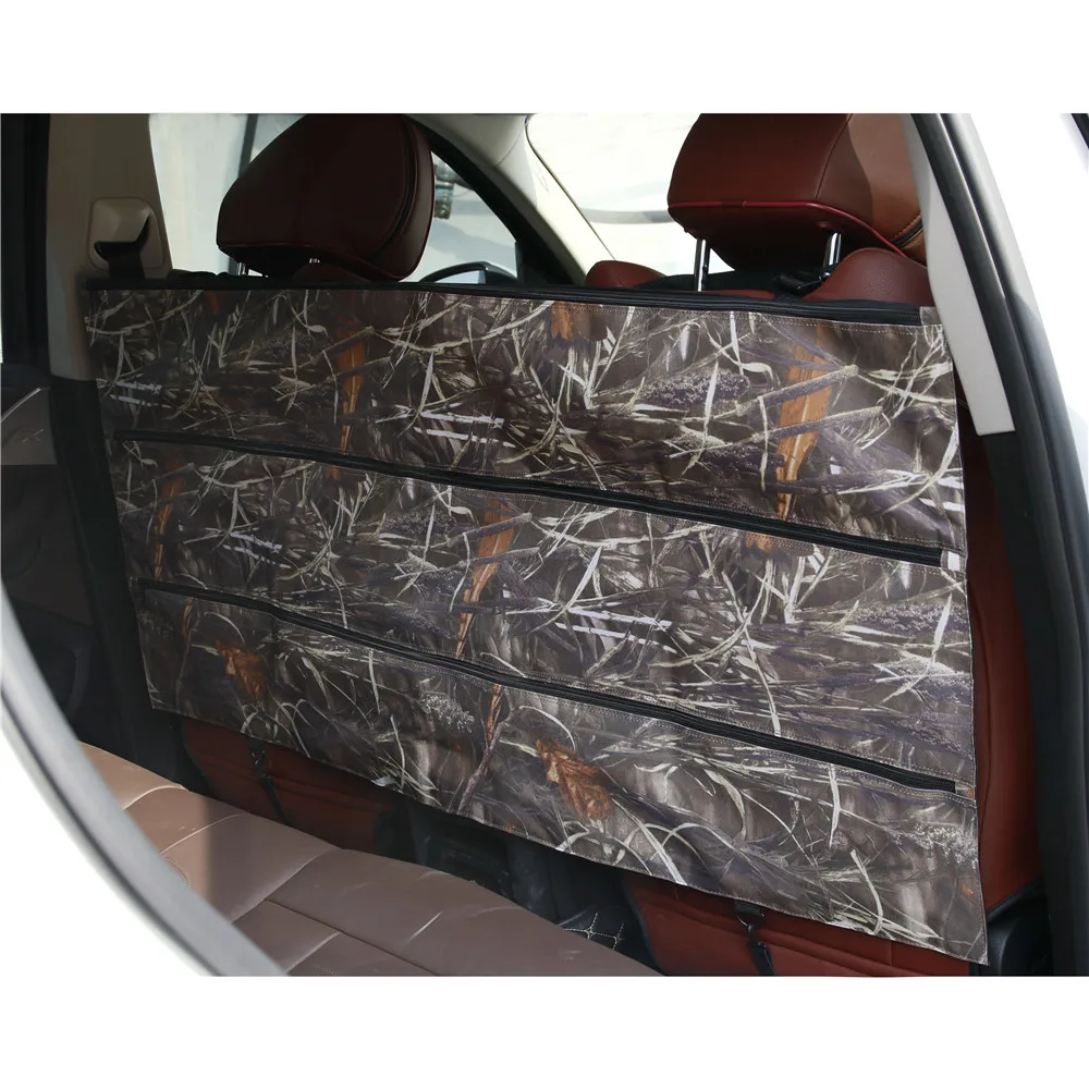 Color:Black, camouflage Non-slip foam pocket interiors for security while transporting (Please NOTICE: NOT for deer rifles, because there are so many kinds of guns, please feel free to check this seat back gun case's size: Overal Dimension: 51*24inch ( three pockets: each pocket size: 51*8inch ) Material: Oxford Fabric 600D, waterproof fabric, Durable and water resistant fabric with protective pockets size: 51*24inch ( three pockets: each pocket size: 51*8inch ), Vehicle gun rack Folds for storage: Keep your valuable firearms and gear organized and hidden; Keeps your back seat clutter free; Easily installs in full size trucks and SUVs Provides a safe place to keep your guns while heading to or from the field. (Simply open one pocket, put the end of the gun in the other pocket, then close. To install, simply strap it around the headrest and the bottom of the seat.)