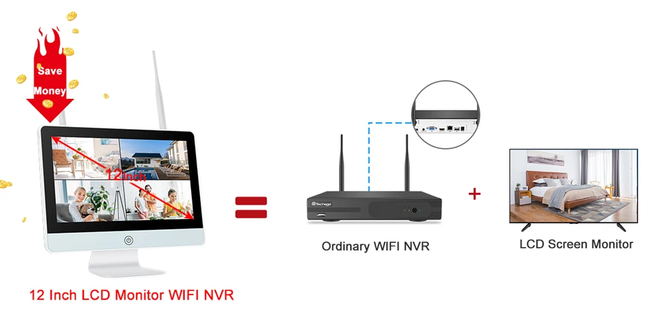 Эта беспроводная система безопасности с 12-дюймовым монитором, вы получите 1080 P HD изображения после завершения установки И сэкономите много денег, чтобы купить дополнительный ПК/ТВ-монитор для подключения. он также доступен для подключения к дисплею компьютера через кабель HDMI (порт VGA не поддерживается).