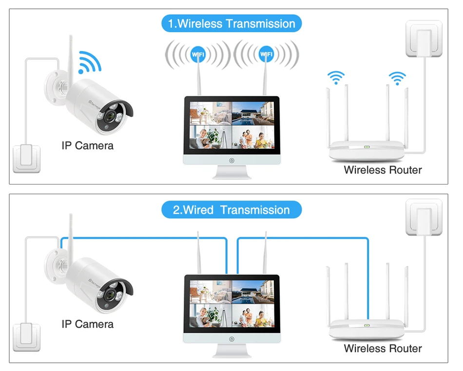 Супер Простая установка и конфигурации. Настоящие подключи и играй, нет необходимости в каких-либо профессиональных навыков, Вы можете полностью сделать это самостоятельно и создать свою собственную систему наблюдения. (8-канальный NVR дизайн, поддержка подключения до 8 шт камер, вы можете купить Techage беспроводные ip камеры для расширения вашей системы видеонаблюдения)