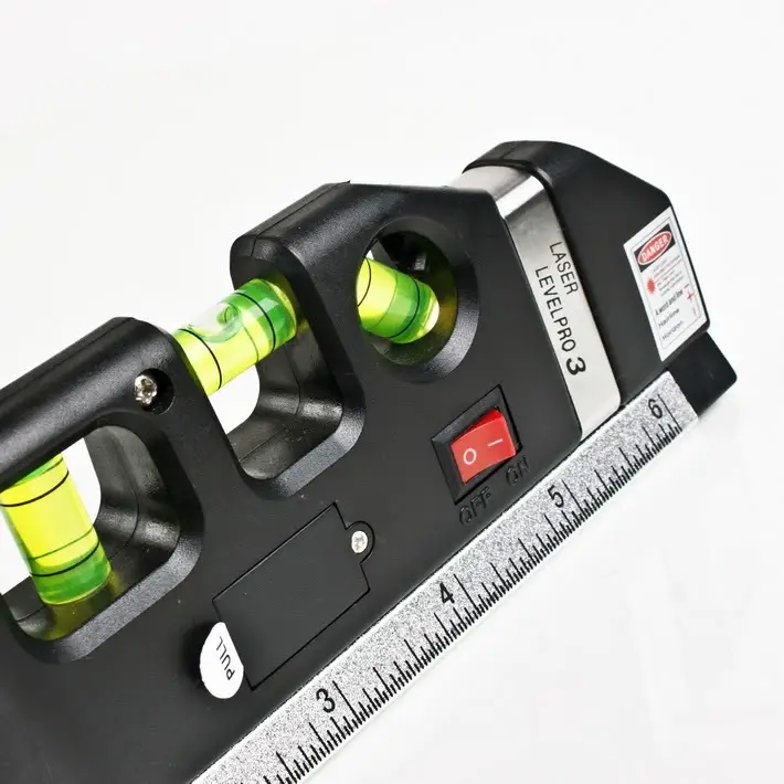 Третья функция: инструмент лазерного уровня с линейкой. (2,5 метров, с масштаба дюйма)