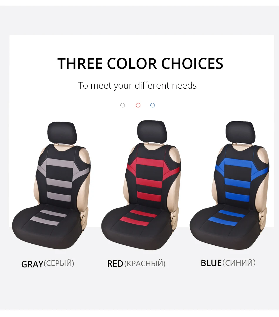 Преимущества чехлов для автомобильных сидений: дышащие удобные моющиеся Тип изделия: чехол для автомобильных сидений с дизайном футболкиВес посылка: 0,45 кг.Размещение на транспортном средстве: переднее сиденьеЦвет чехла для автомобильного сиденья:Серый/синий/красныйСовместимые транспортные средства: подходит для всех стандартных автомобильных сиденийТип блока:Комплект из 2 предметов; Костюм для сиденья автомобиляКомплект: 2 Особенности: легко установить и легко чиститьТип изделия: чехлы для сидений, поддерживающие Материал чехла для автомобильных сидений:ПолиэстерЧехол для автомобильного сиденья: Универсальный подходит для большинства транспортных средств
