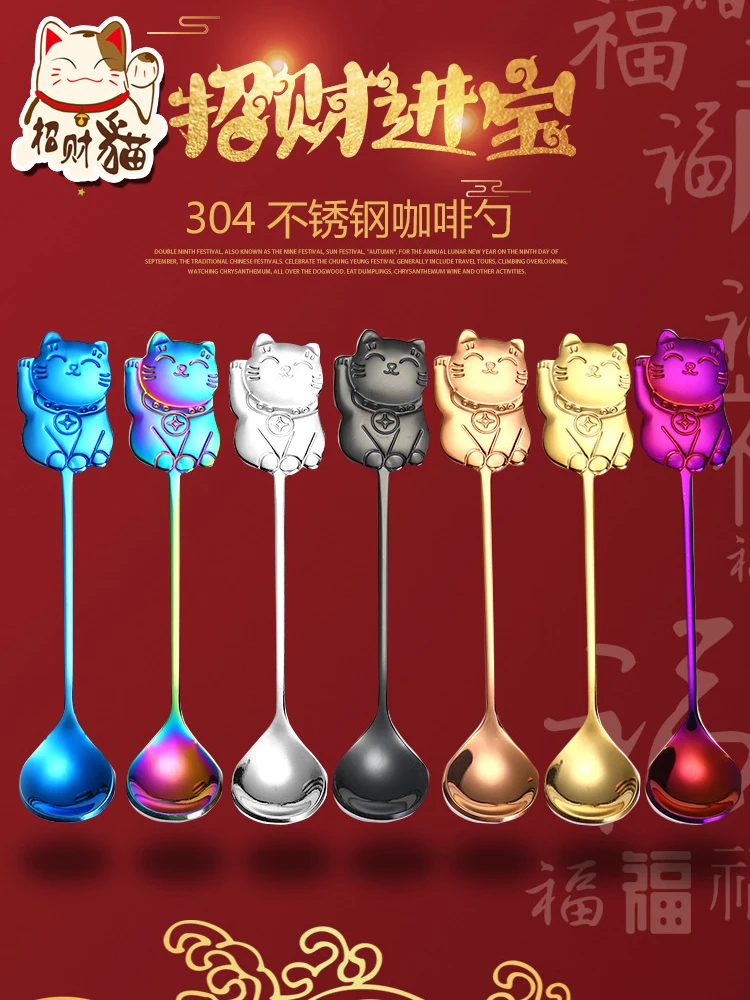 7 шт/4 шт Lucky Cat комплект кофейных ложек из нержавеющей стали десертная ложка для мороженого чайные ложки, кофейные принадлежности столовые приборы