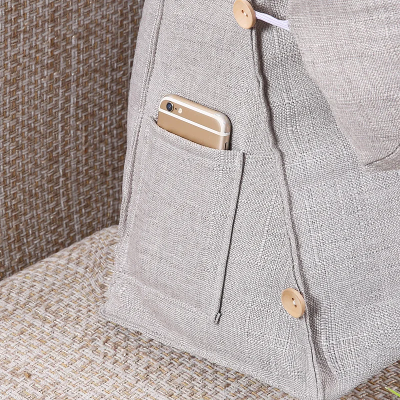 Хлопковая льняная треугольная Подушка для спины регулируемая высота для дивана подушки для постельного белья подушка для спины большой размер Параметры: Материал: из хлопка и льна Размеры: 45x48x20cm Расположение: Может использоваться в кровати, диване. Метод очистки: крышка машинная стирка Особенности: 1. Дизайн кнопки, вы можете настроить высоту в соответствии с вашими потребностями 2. Льняная ткань, мягкая, плотная и износостойкая 3. Боковой карман для телефона, удобный для использования, вы можете положить пульт дистанционного управления, мобильный телефон, разное и т. Д. Примечание: Пожалуйста, внимательно прочитайте описание товара перед размещением заказа. Размер может быть на 1-2 см из-за ручного измерения, цвет может немного отличаться из-за монитора. Спасибо за понимание. Посылка включает в себя: 1 шт. подушка для дивана