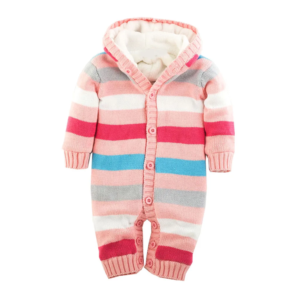 Зимняя куртка для новорожденных мальчиков; Теплый Вязаный комбинезон в полоску; свитер с капюшоном