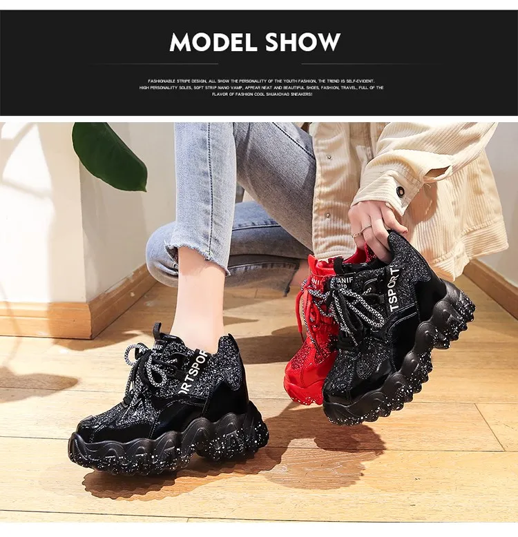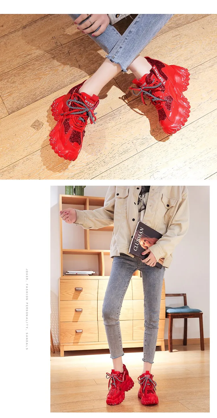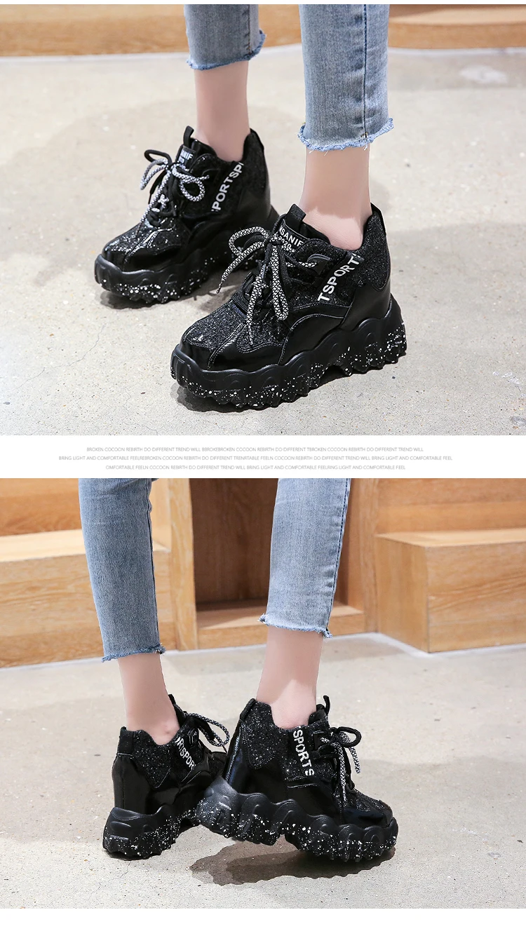 Женские кроссовки на платформе, весенние кроссовки со шнуровкой и блестками, модная повседневная обувь с высоким верхом, кроссовки на толстой подошве для женщин, 2020