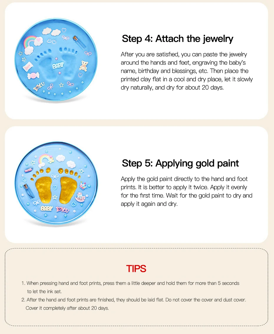 Детский комплект для фотосъемки с принтом в виде рук и ног, Детский комплект для рукоделия, подарок на сто дней, сувениры для детей Наименование товара: Детский комплект с принтом для ног Количество: 1 комплект Характеристики: запись роста ребенка, Нетоксичная безопасная глина, подарок для детского душа Диаметр коробки: 20 см/7,87 "(прибл.) Примечания: Благодаря светильник и экрана Цвет Товара может быть s светильник ly отличается из-за характеристик монитора компьютера. Возможны незначительные отклонения в размерах из-за различных измерений вручную. Посылка включает в себя: 1 х металлическая коробка 1 x номер наклейки 1 x Пластик держатель 1 х Кисть 1 x золотой Краски 1 х Бутылка 1 x штемпельная подушечка аксессуары 1 x штемпельная подушечка 1 x ролик 1 x Ножи 1 x пожелания капсулы