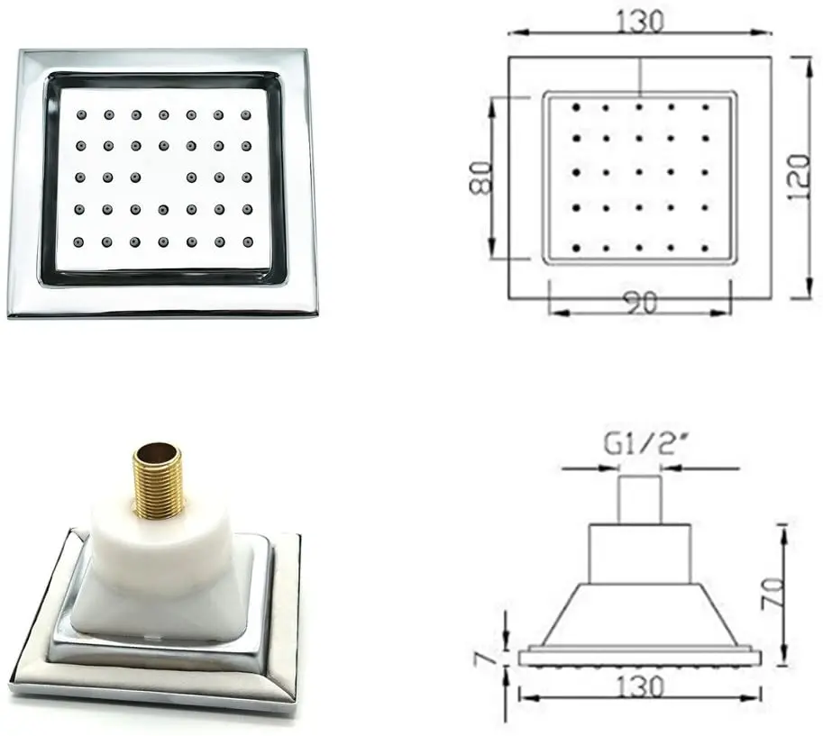 Цвет: хром Тип: распылитель для душа Материал: латунь Отделка: хром Размер распылителя: 120x130 мм (x дюйма) Давление воды: 10 кг Подходящее место: ванная комната, Душ Размер установочного соединения: G1/2'' Что такое коробка: 1 шт. распылитель для массажа тела