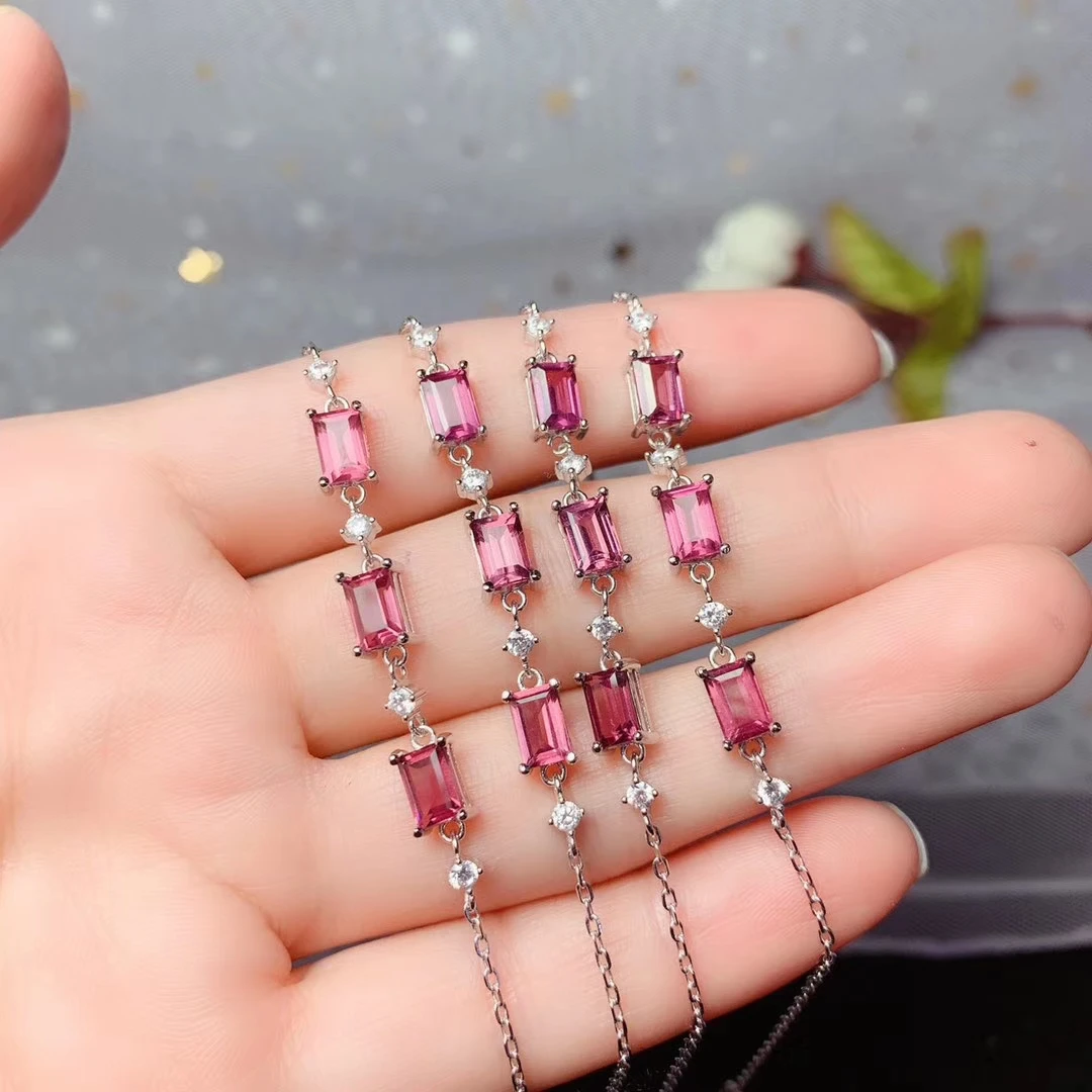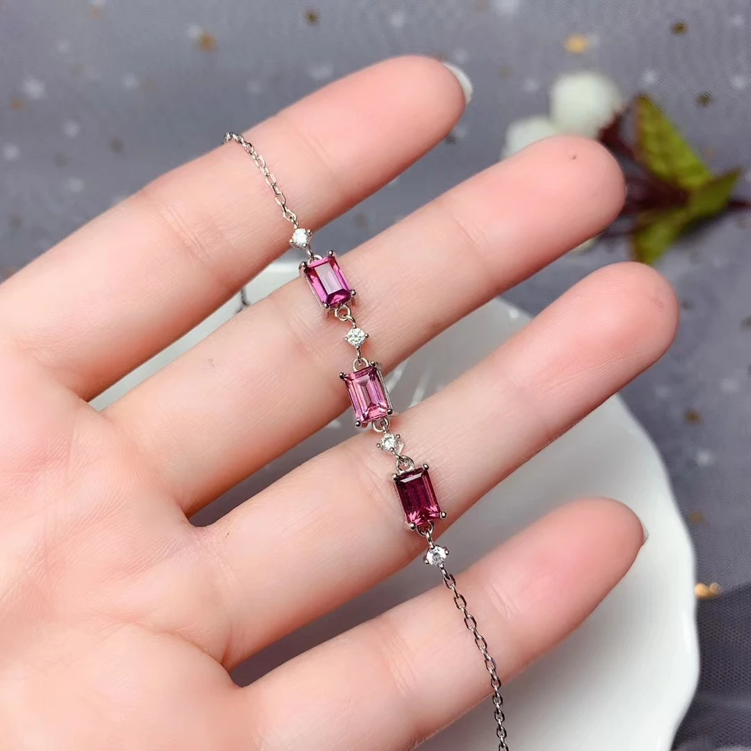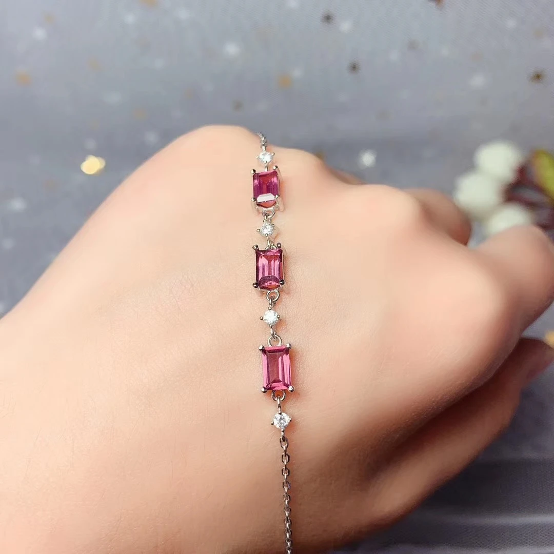 Новый стиль красный браслет гранат для женщин ювелирные изделия Настоящее серебро 925 натуральный драгоценный камень прямоугольник 4*6 мм размер девушка подарок на день рождения Большая распродажа