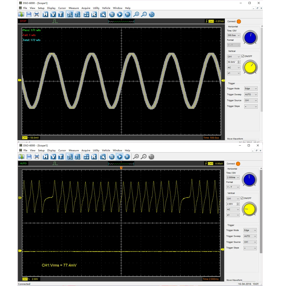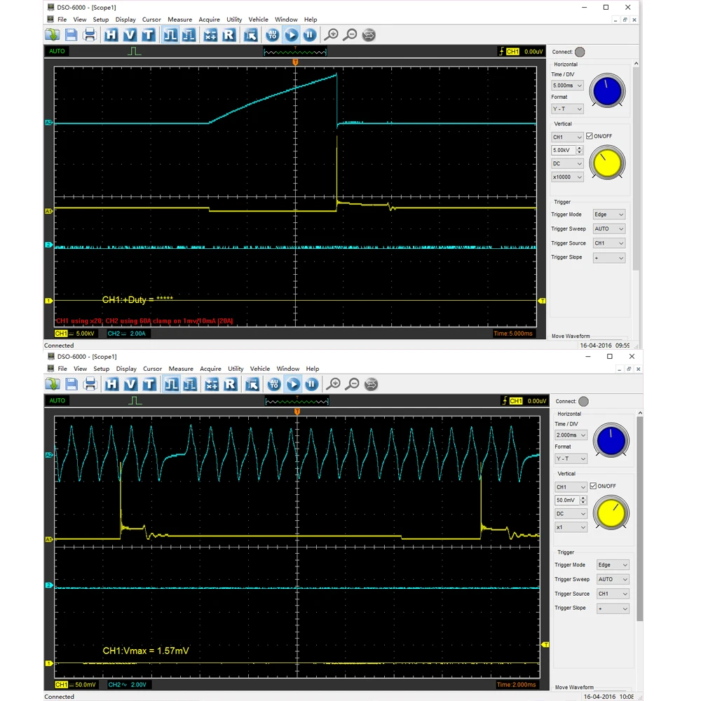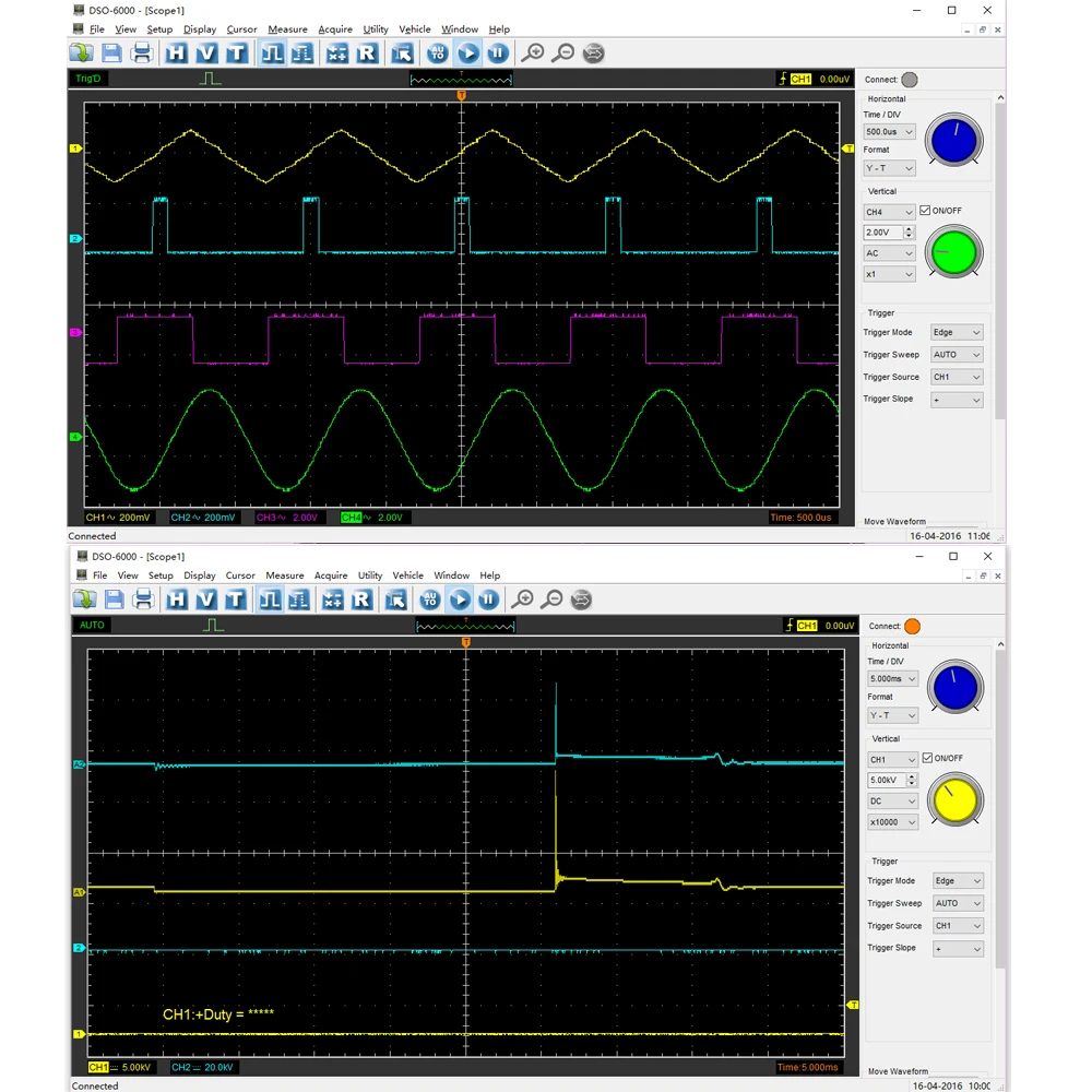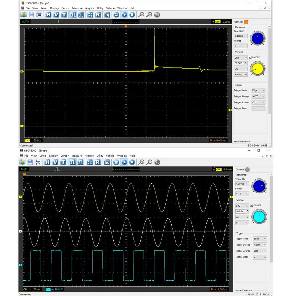 ◆Стандарт оснащен более чем 80 типами автомобильных измерительных функций; ◆Первая Диагностика: впускной коллектор вакуум и зажигание, бензиновые пары регулирующий клапан вакуум и зажигание, холостое зажигание выхлопа, пусковое зажигание выхлопа ◆Зажигание: первичный и вторичный ◆ Датчик: расходомер воздуха, распределительный вал, коленчатый вал, распределитель, лямбда-датчик, положение дроссельной заслонки ◆Диагностика автобуса: можно проверить данные автобуса, целостность сигнала CAN, долгосрочное приобретение CAN bus LH, LIN bus ◆Performer: бензин/дизель ◆Starter и зарядный схемы ◆Подходит для портативных компьютеров, настольных ПК и подходит для использования на мобильных телефонах и деловых поездок. Поддержка WIN10/ WIN8/WIN7 и т. Д. ◆USB 2,0 интерфейс подключи и работай, и не нужен дополнительный источник питания; ◆Отличная функция, более 20 видов автоматической функции измерения, функция проверки прохода/сбоя. ◆Находчивая функция триггера, динамическое отслеживание курсора, запись сигнала и функция воспроизведения. ◆Хороший Механический дизайн с небольшим размером, который легко носить с собой. Внешний чехол изготовлен из того же материала, что и анодированный алюминий для iPad. Он обладает большой термостойкостью и абразивной стойкостью с красивым внешним видом. Твердость поверхности алюминиевого сплава значительно улучшается. ◆ 4 канала осциллографа, 1gsa/s частота дискретизации в реальном времени, 2 мВ-10 В/DIV Высокая Входная чувствительность и большой входной диапазон, 70 МГц высокая полоса пропускания, ◆Данные формы сигнала могут быть выведены в EXCEL,BMP,JPG. ◆Усреднение формы волны, последующее свечение, контроль легкости, обратное, добавление, вычитание, размножение, разделение, X-Y дисплей. ◆Fft анализатора спектра ◆One компьютер может подключаться к нескольким осциллографам, легко увеличить номер канала. ◆Предоставление вторичной библиотеки развития DLL; Предоставление примера разработки Labview \ VB \ VC \ QT.
