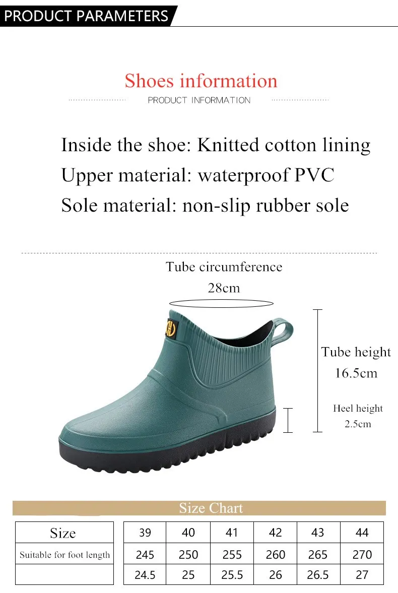 Популярная обувь; Мужские ботинки; Модные резиновые сапоги; Нескользящая водонепроницаемая обувь; Короткие резиновые сапоги для дождя; Мужские ботинки для садовой рыбалки; Водонепроницаемые ботинки для мужчин