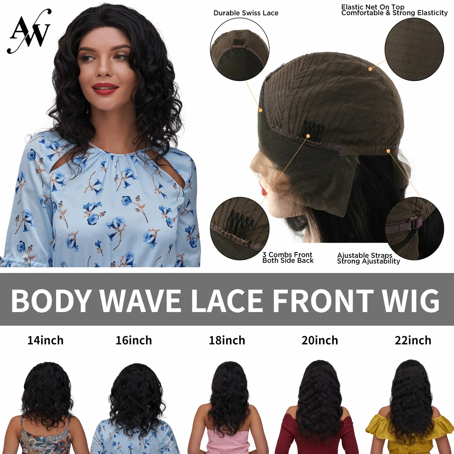 Item Type: Lace Front Wig Material: 100% Remy Human Hair Hair Length: 14inch, 16inch, 18inch, 20inch, 22imch Hair Texture: Body Wave Density: 150% Cap Type: Lace Front Wig Cap(Front Part Hair By Hand Hooked) Cap Size: Average Size Appearance: 3 Combs inside the cap & Adjustable Strap for Perfect Fit Features: 1. No shedding & No Tangle 2. Can be Curled, You Can Restyled by Yourself 3. Pre-plucked Natural Hairline 4. HD Transparent Lace Delivery: FedEx/DHL Fast Free Shipping, just need 3-5 business days to receive