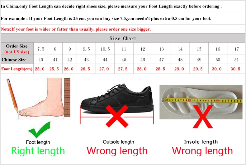 1. Мы не являемся размерами США. Мы не являемся европейскими размерами. В Китае только длина стопы определяет правильные размеры. Не измеряйте длину подошвы. Не измеряйте длину стельки. Пожалуйста, точно Измерьте длину вашей стопы, а затем выберите размер в соответствии с нашей таблицей размеров. 2. Если вы чувствуете неприятный запах, это нормально, потому что новая обувь может иметь запах клея. 3. Фото может отличаться от реальной обуви, изображение может быть ярким, реальная обувь может быть темной. 4. Мы упаковываем обувь в Поролоновый пакет, а не в коробку, поэтому обувь может быть немного помята после получения.
