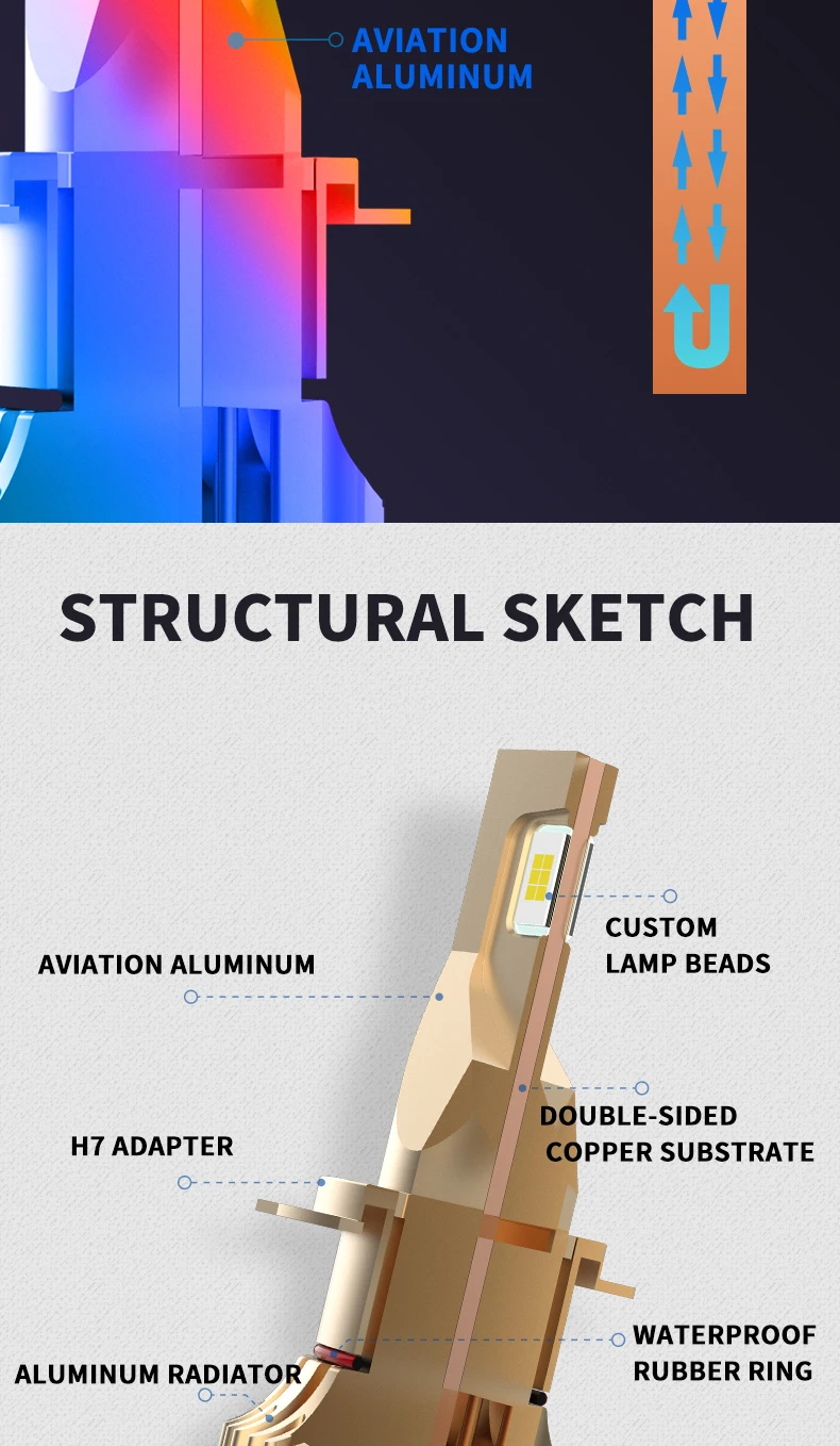 1. Цельный алюминиевый профиль в качестве теплопроводной системы, тепловое излучение на 360 градусов