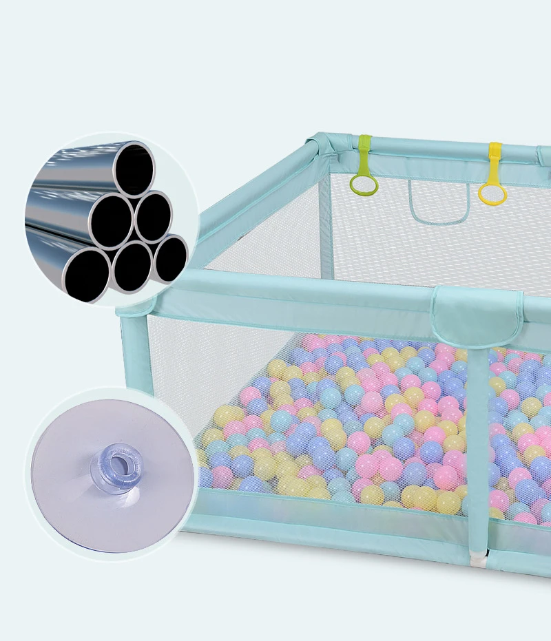 Утолщенная стальная труба диаметром 22 мм, усиленные треугольные соединения и соединение стальных труб, прочная присоска TPR внизу, чтобы ребенок не сдавливал забор.