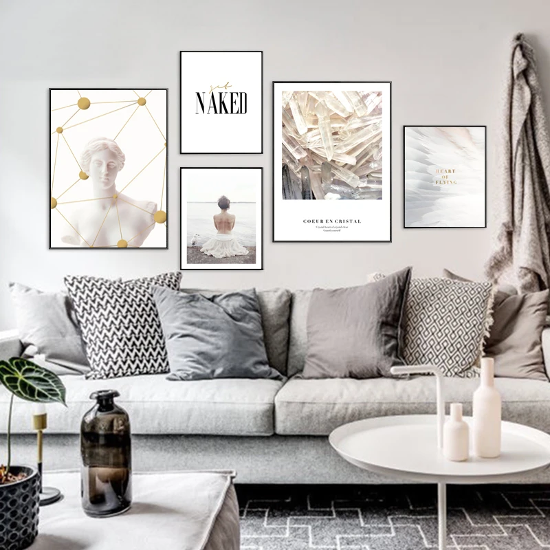 Перо обнаженной женщины современная картина холст женская статуя росписи постер и печать домашний декор живопись гостиная