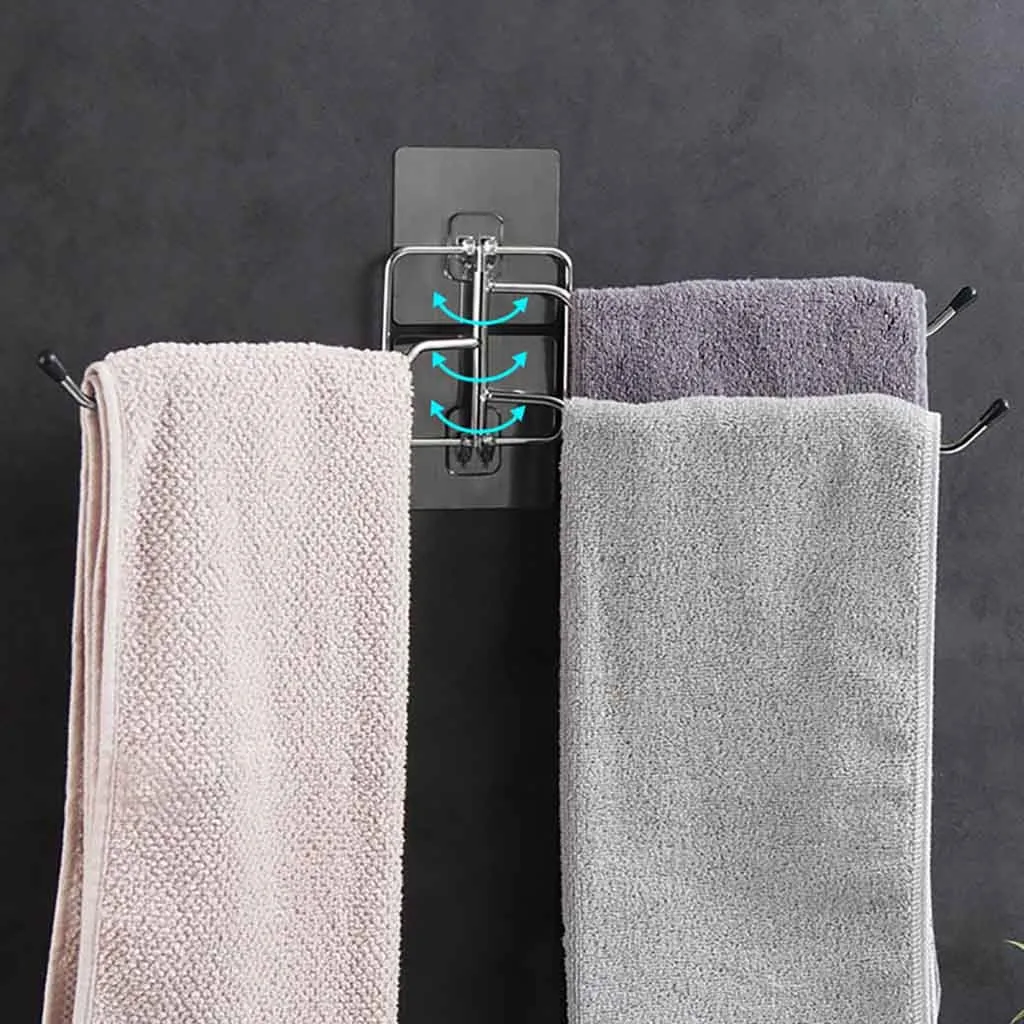 Towel Holder Bathroom Shelves Towel Hanger A Shelf Towel Bar 180 Degree Towel Rack Bathroom Kitchen Wall-mounted Owel Rack